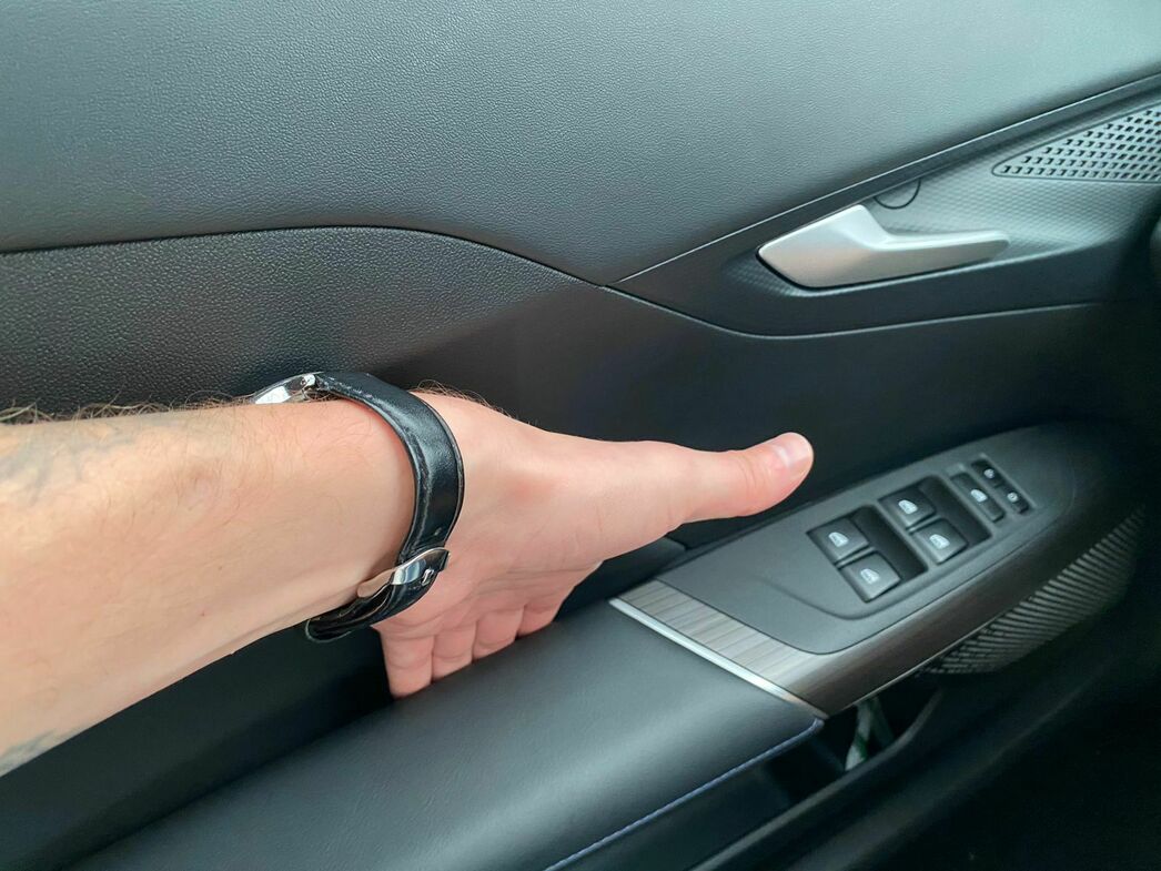 Но куда забавнее внутренние ручки отпирания дверей. Смотришь на рукоять, а ее будто бы и нет. Но она есть. Едва заметная ниша для хвата пальцев практически вплотную стыкуется с обшивкой двери. Прикольно, но «руки Базуки» ее уже не откроют. Впрочем, для героя «кринжовых» видеороликов найдется место в багажнике, благо объем его отсека составляет внушительные 520 литров. К слову, всего на 4 литра меньше, чем у пресловутой Toyota Camry.