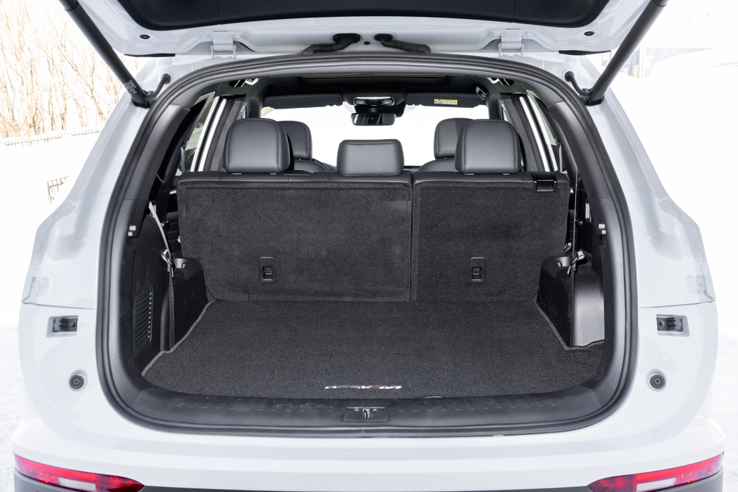 Внушает уважение и объемный багажник. В литро-цифровом выражении это 450/957/2215. Как видите, даже в семиместной конфигурации для багажа останется место. Но особенно впечатлила специальная ниша в подполе (запаска висит снизу кузова), куда можно спрятать рулонную полку-шторку. Удобно.