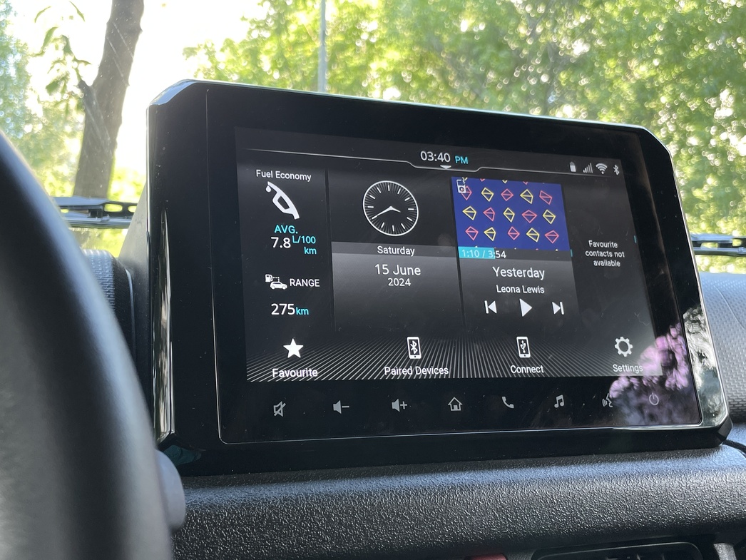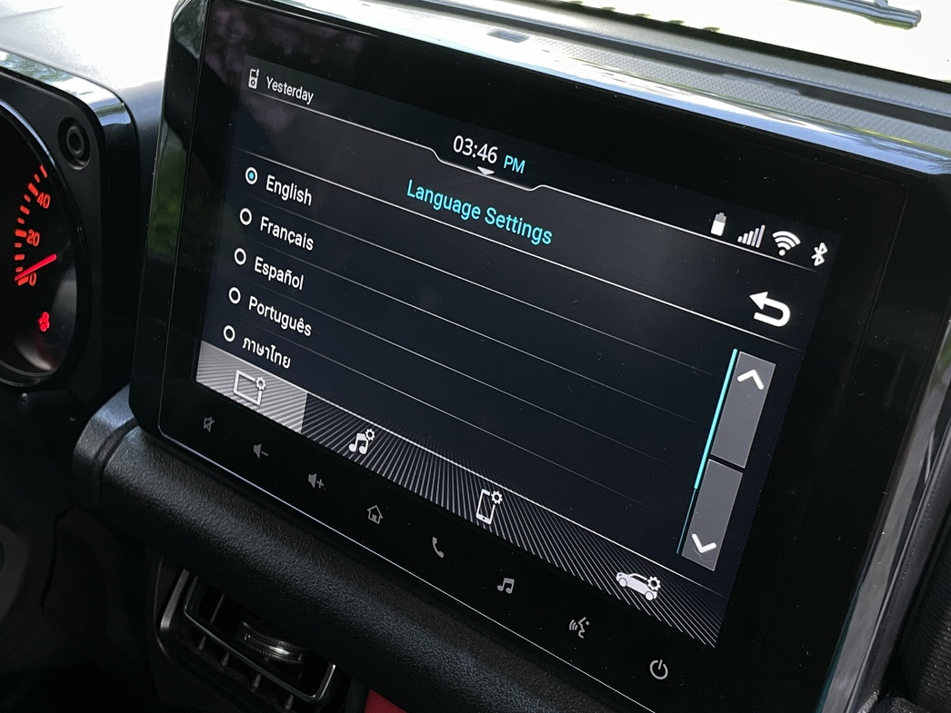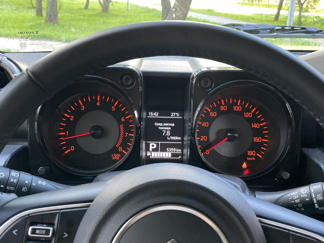 С чем еще придется мириться владельцу Suzuki Jimny, так это с довольно посредственной шумоизоляцией и сильными вибрациями на холостых. Кого-то может озадачить и отсутствие русского языка в меню мультимедийки, хотя там все интуитивно понятно и с английским. Сам информационно-развлекательный комплекс, кстати, отзывчивый и расторопный, но однажды он меня все-таки подвел: на втором часу пробки под палящим солнцем безнадежно завис — вероятно, перегрелся.