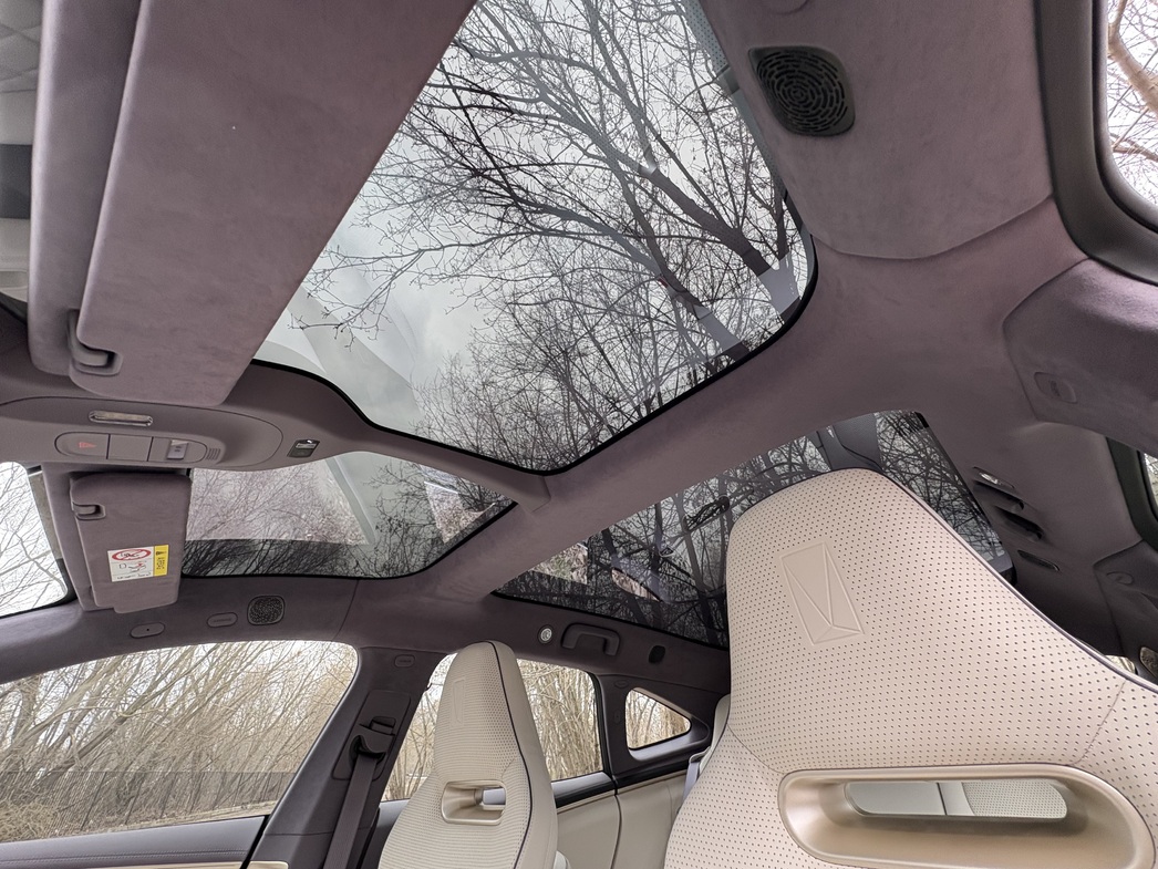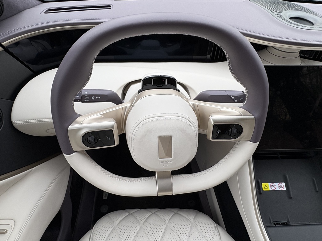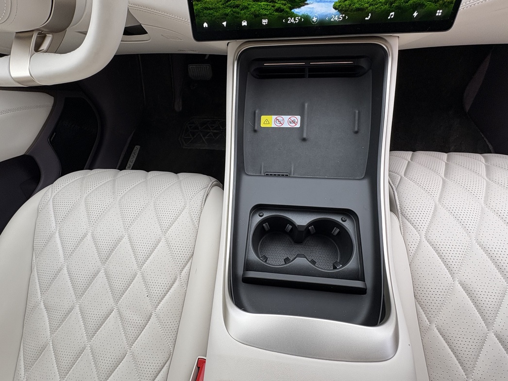 Удобно устроиться за рулем электрокара удастся не всем. Как по мне, так подголовник немного давит на затылок, а спинка сиденья слишком уж мягкая. Но зато есть массаж, вентиляция и подогрев — всерьез жаловаться на эргономику, честно говоря, грех. К тому же водительское кресло запоминает настройки, а при выходе — отъезжает назад, освобождая пространство.