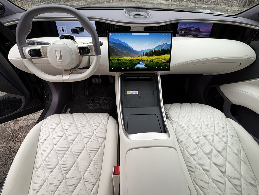 И если уж мы заговорили про стиль, то Avatr 11, на мой взгляд, чуть ли ни первое транспортное средство из Китая, где использование огромного экрана не вызывает чувство неуместности своими размерами и инородностью. Он, вкупе с водительским и пассажирским дисплеями, более чем элегантно вписывается в пространство передней панели, украшенной загадочной «воронкой», подчеркивая те самые минималистические устремления авторского коллектива в оформлении внутреннего пространства машины. Пусть, повторю, и не всем такой подход в «автоискусстве» по душе, но законы жанра соблюдены на все сто.
