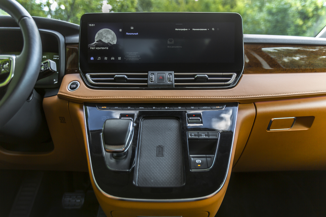 Разве что температуру и обдув настроить, но вечный китайский вопрос с климатической установкой не обошел и Hongqi HQ9: отрегулировать «погоду» для водителя под изменчивое московское лето не удавалось, а под дождем автобус и вовсе предательски запотевал всеми стеклами. Пришлось вымораживать салон, иначе дорогу не видно.