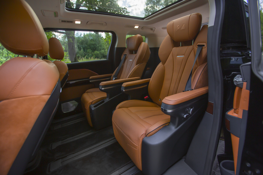 В нашем распоряжении оказался минивэн в комплектации Deluxe, который предлагают по цене от 7 млн рублей с учетом скидок и спецакций. Но есть в России и максимальная версия Executive c подогревом руля (вот это роскошь), системой активного шумоподавления, сенсорной регулировкой «королевских» кресел второго ряда, многослойным стеклом сдвижных дверей, суперзеркалом заднего вида и электронной системой управления дальним светом. Такая обойдется в 9 млн «деревянных».