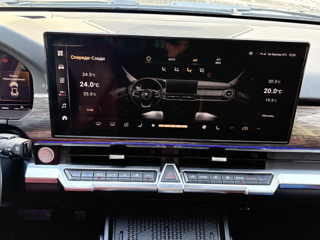 Что касается большого 16,2-дюймового тачскрина, то он весьма оперативен и невероятно радует тем, что в его богатые недра не надо лезть по каждому поводу! Подогревы, вентиляция, внедорожные режимы — все на центральном тоннеле, все физическое. Такого обилия кнопок в другом современном «китайце» не найти днем с огнем. Но Apple CarPlay и Android Auto — в наличии. Для смартфонов есть беспроводные зарядки.