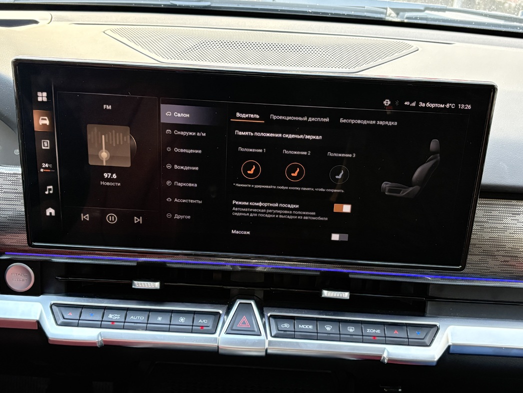 Посадка — высокая, обзор — отличный. Электроприводы, разумеется, уже в базе, а в старшей версии к ним добавляются массаж и память настроек. Однако профиль нижней подушки кресел рассчитан на граждан солидной комплекции: субтильного шофера в поворотах она держит неидеально.