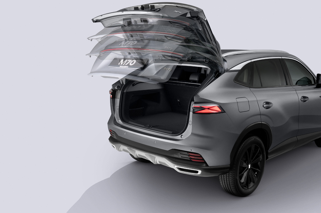Как уже было сказано, «Москвич М70» — кроссовер С-класса. Его длина составляет 4655 мм, ширина — 1890 мм, высота — 1664 мм. Колесная база — 2765 мм, дорожный просвет — 182 мм. И это вполне типичные параметры для сегмента — за рамки дебютант не выходит. Пять посадочных мест, объем багажника от 507 до 1484 л в зависимости от положения спинок задних сидений (которые, к слову, складываются в почти ровный пол). Подвеска тоже классика — МакФерсон спереди и многорычажка сзади.