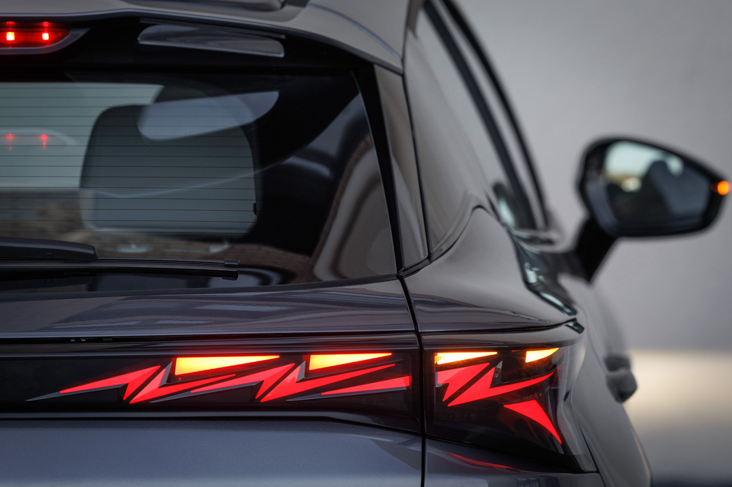 Вид сбоку держит «парящая» на темных стойках ниспадающая к корме крыша. Ну а разлет задней оптики и корма в целом даже впечатляют. Фонари-молнии практически как у флагмана бренда С7. Кстати, оптика по кругу светодиодная даже в базовой версии «Актив» за 2 349 000 млн. рублей.