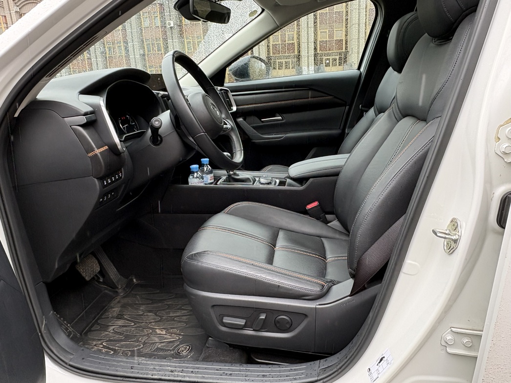 При этом там, где Mazda старается, результат впечатляет. Мягкая отделка передней панели, шелковистая кожа руля, аккуратная оранжевая прострочка, матовый декор под металл на торпедо. Климат-контроль работает адекватно и не требует постоянной подстройки, как у тех же «чайнакаров», а его крупные барабанчики — образец удобства. Просто этого недостаточно за те деньги, что за этот SUV просят — 4,3-4,7 млн рублей в зависимости от комплектации и хотелок продавца.