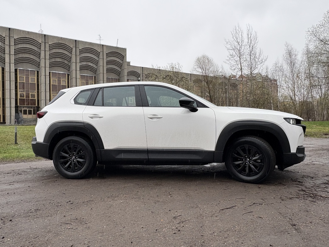 Впрочем, грубоватый черный пластик на порогах и арках при всей своей функциональности визуально удешевляет автомобиль. А 17-дюймовые колесные диски с шинами размерности 225/65 в крупных квадратных арках выглядят откровенно мелковато. Рейлингов на крыше нет, хотя для SUV с заявленным акцентом на активный образ жизни это странное упущение. Тем не менее общее впечатление от экстерьера остается сильным: CX-50 смотрится солидно, современно и при этом не спутать ни с одним конкурентом.
