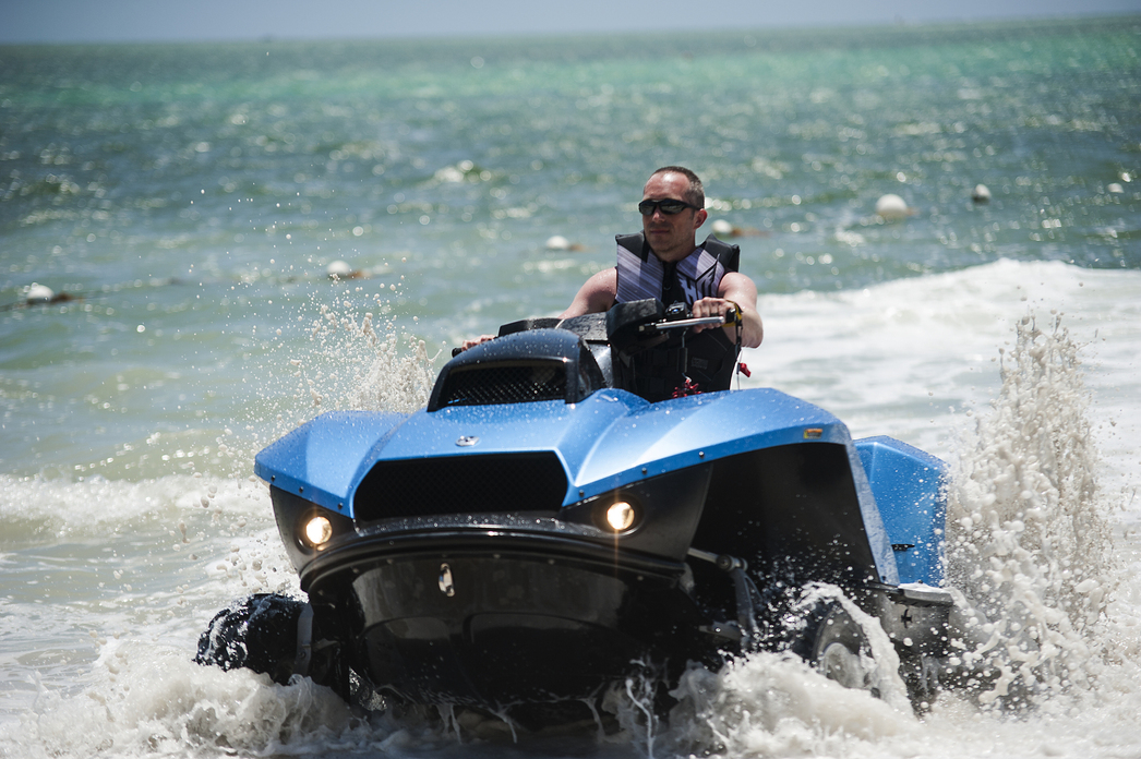 Этот аппарат может стать идеальным выбором для многих охотников и рыболовов, да и просто любителей активного отдыха на природе... Легко меняя свои «земную» и «водную» ипостаси, амфибия, не уступающая в скоростях квадроциклам на суше, а гидроциклам – на воде, делает любимое хобби еще более увлекательным. И все бы хорошо, если не цена вопроса. Но обо всем по порядку.