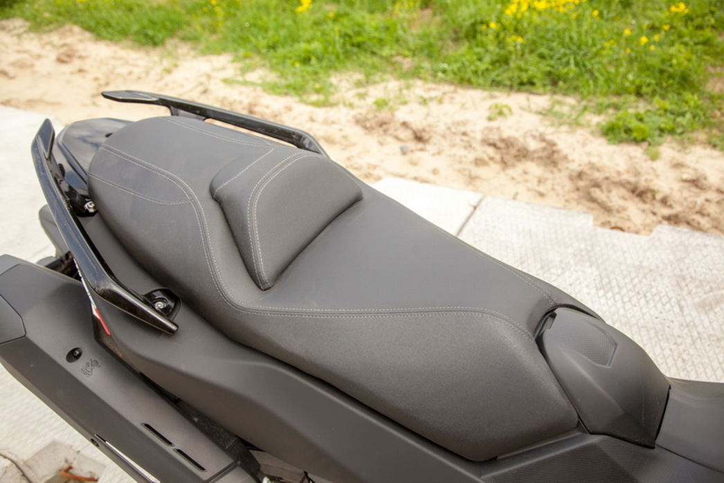 Еще один плюс тайваньского «максика» в том, что он удобен для поездок как на короткие, так и на длинные расстояния. Переднее сиденье — сродни автомобильному креслу — удобно и комфортабельно, и даже имеет небольшую поддерживающую спинку. Для ног есть два вида подножек: горизонтальные и, чтобы ноги не затекали в одном положении, да и просто для удобства, под углом. С такой посадкой пара сотен километров проезжается в один присест. Можно, конечно, и больше, но бак вмещает 12,5 литров топлива, а расход на сотню составляет около 5-и литров.
