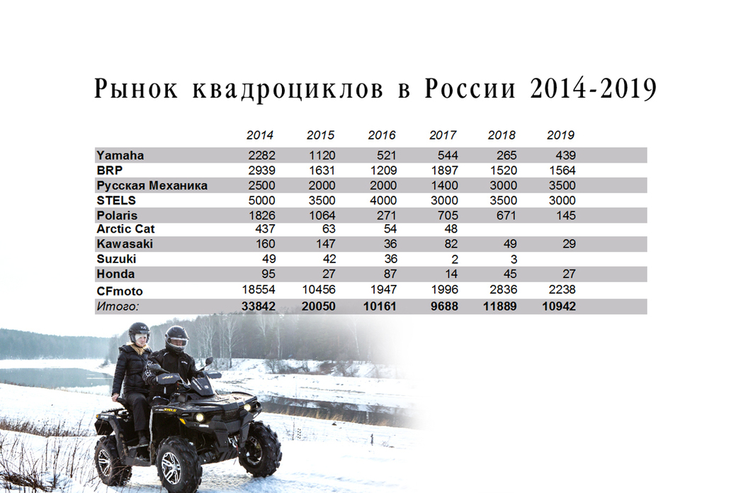 Тем более, что даже несмотря на то, что рынок квадроциклов и снегоходов несколько лет подряд переживает далеко не самые лучшие времена, мотопродукция STELS продолжает пользоваться устойчивым спросом и даже показывает рост. В таблицах, приведенных ниже, наглядно видно состояние рынка и, если можно так выразиться, самочувствие его участников.