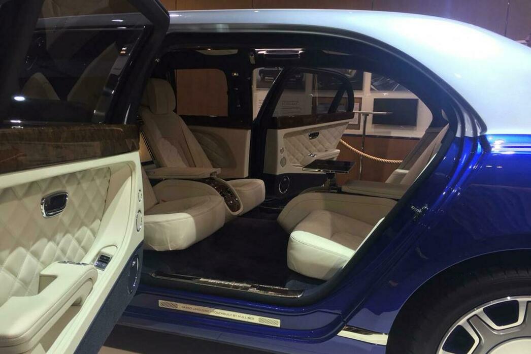 Британцы выкатили самую роскошную версию обновленного Mulsanne, который теперь стал на метр длиннее и почти на 80 мм выше. Благодаря конфигурации шестиместного салона пассажиры могут сидеть друг напротив друга, а к их услугам – индивидуальные столики, кроштейны для планшетных компьютеров с возможностью подзарядки, холодильник и отделение для хранения бутылок. Водитель находится за перегородкой, которая в одно касание из прозрачной превращается в затемненную, а связаться с рулевым можно только по внутреннему коммутатору.