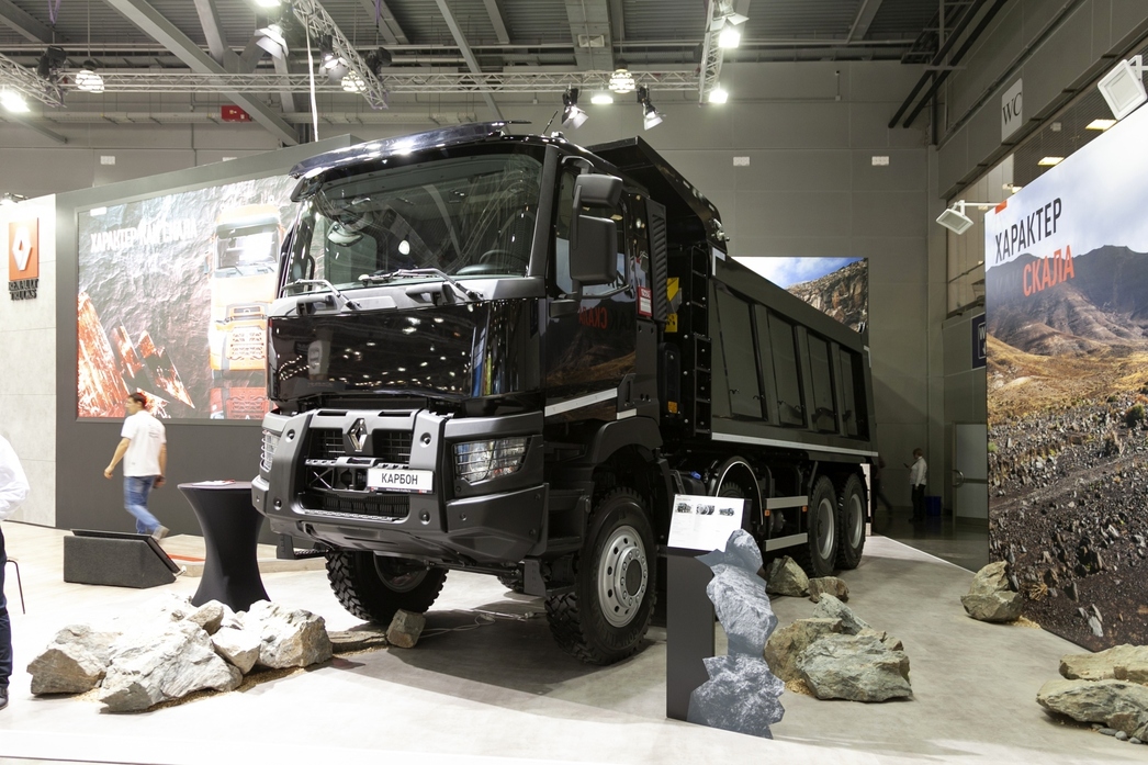 Поэтому 500 квадратных метров стенда занимают Renault Trucks T-High Турмалин, оснащенный 13-литровым двигателем мощностью 480 л. с., АКП Optidriver, спальной кабиной с ровным полом и многочисленными системами помощи водителю. Здесь же — проверенный временем и нашими дорогами Renault Trucks T Карат, самосвал для сверхсложных условий транспортно-строительного цикла Renault Trucks К 6х6 и Renault Trucks К 8х8 Карбон — знаменитый самосвал для перевозки сыпучих грузов с 13-литровым двигателем в 480 л. с. и кузовом Wielton.