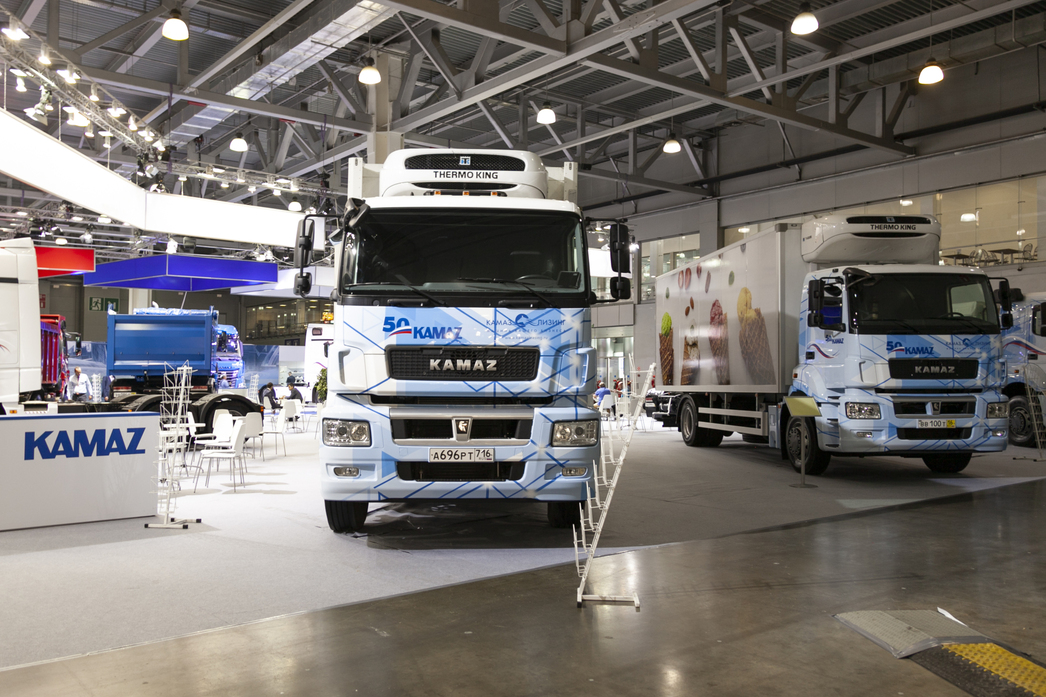 В честь своего 50-летия, КамАЗ выставил все свои достижение и открыл для посетителей самый большой на выставке стенд — более 3500 квадратных метров и широчайшую уличную композицию. В зените стенда — триколор серийных уже магистральных тягачей КамАЗ-54901 поколения К5 с абсолютно новым мотором и новой кабиной, произведенной на совместном заводе КамАЗ и Daimler. Тягач умеет держать полосу и даже принудительно тормозить.