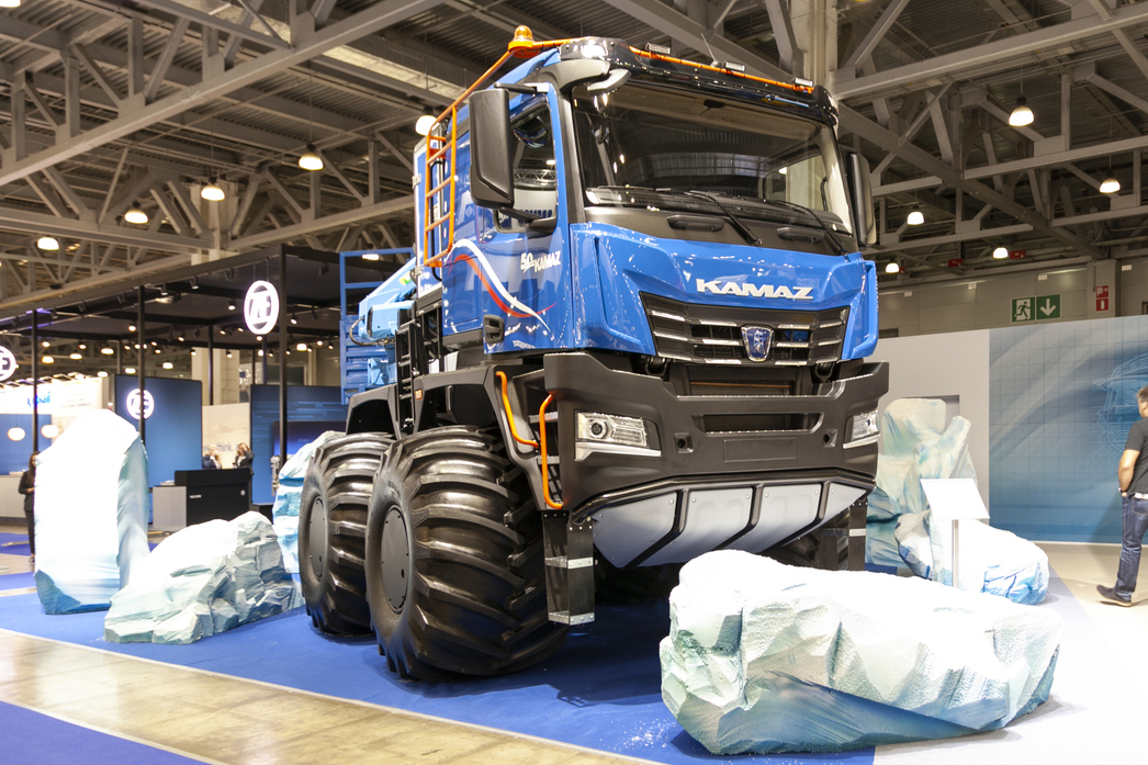 На «Комтранс» челнинцы привезли и «Арктику» — первый свой сочлененный грузовик с поворотным шасси. Машина предназначена для эксплуатации в экстремальных условиях и будет производиться только на заказ. Рядом с ней автомобиль, который нельзя купить в магазине — легендарный гоночный грузовик Эдуарда Николаева, победителя «Дакара».