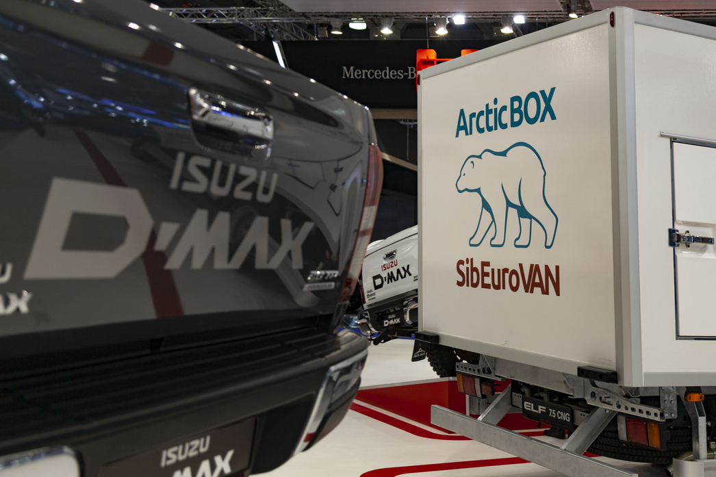 Прямо напротив немецкого стенда стоит Isuzu D-Max Arctic Truck. Пикапы угрожающе смотрят друг на друга, словно осознавая, что им придется серьезно посоперничать за покупателя. Обе машины — что D-Max, что X-class — новички рынка, у которых пока нет фан-клуба в России. Японцы, как обычно, делают ставку на надежность и огромный ресурс, а также предлагают клиенту комфортный сервис. Удобно, когда весь корпоративный парк состоит из автомобилей одного бренда — обслуживать проще, да и договориться с дилером о лучших условиях не составит труда.