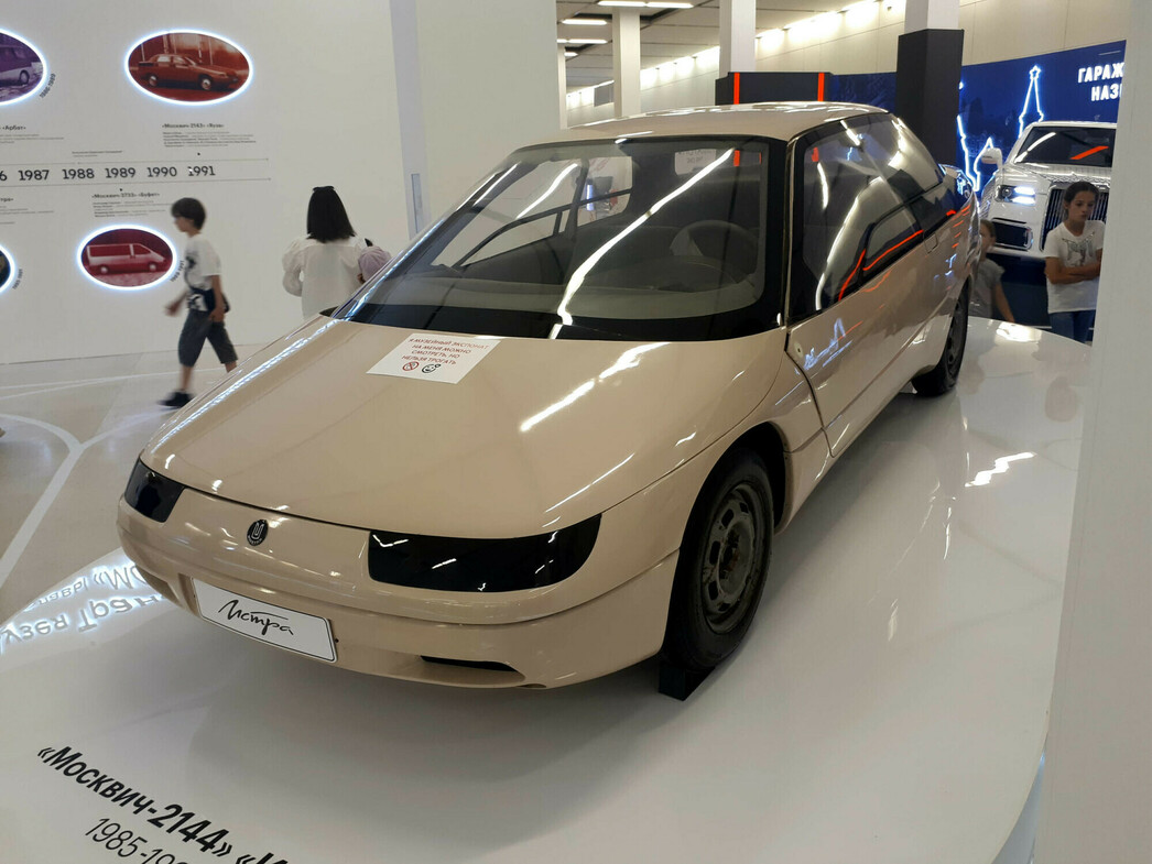 Опытный экземпляр «Москвич−2144 Истра» — кладезь новых технологий конца 80-х годов. Под его капотом разместился дизельный мотор фирмы Elsbett, работающий даже на рапсовом масле. Есть место для установки прибора ночного видения, а двери открываются вверх.
