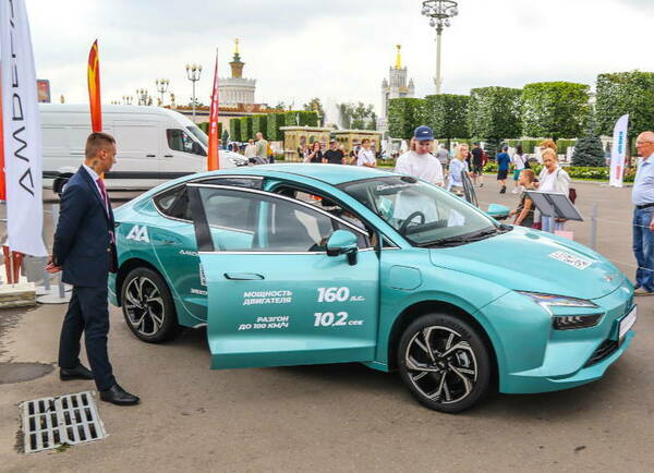 Главной звездой стенда стал флагманский седан АМБЕРАВТО А5. Этот электромобиль был первым представлен на рынке под собственным брендом АВТОТОР, обладает двигателем мощностью в 160 лошадиных сил, запасом хода в 520 километров и разгоном до 100 километров в час за 10,2 секунды. А5 уже доказал свою надежность в реальных условиях — в Калининградской области на его базе создан парк электротакси, где некоторые машины уже успели преодолеть более ста тысяч километров. Это говорит о том, что седан способен выдерживать интенсивную эксплуатацию в городских условиях, сохраняя при этом свои качества.