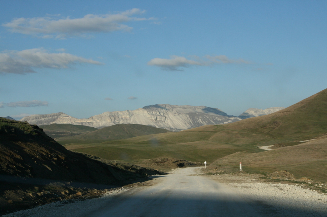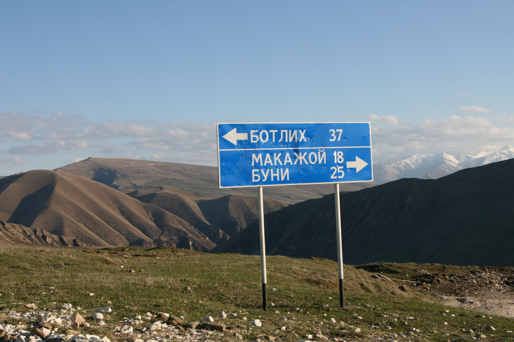 Хотя нам нужно было проехать около 40 километров, из-за постоянного петляния по горам дорога растянулась. За весь путь мы увидели лишь одно жилое строение и вагончик для намаза. Так же встретили одинокого джигита на коне, который с большим интересом смотрел на наше авто. Я бы сказал, даже облизывался. А у единственного указателя свернули не в ту сторону и заблудились. К счастью, поняли это довольно быстро, километров через пять... А правило для потерявшихся в горах одно – ждать, пока кто-нибудь не проедет мимо. Иначе можно потеряться окончательно.