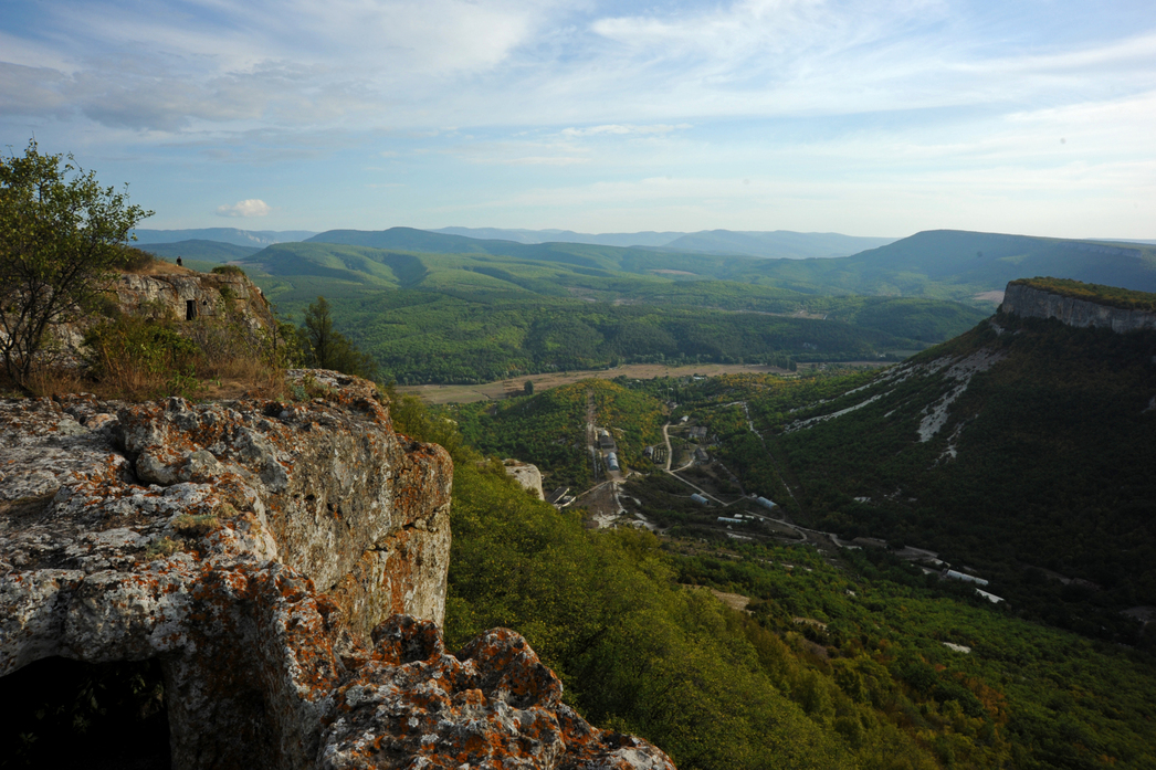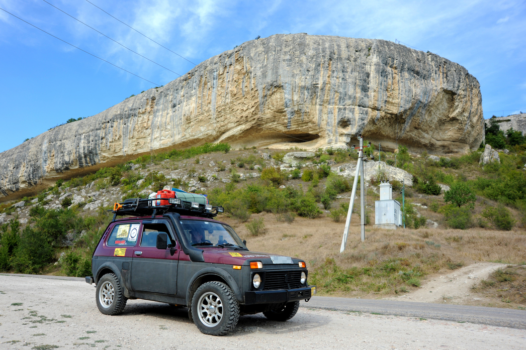 Но мы, слава Богу, поехали в отпуск на машине (какие «засады» ждут автопутешественников по дороге в Крым, вы можете узнать здесь). И после нескольких дней отдыха на диких Генеральских пляжах сначала совершили довольно экстремальную вылазку к одному из самых больших водопадов Крыма, а потом, наслышанные про многочисленные пещерные города, решили посмотреть и их. При этом четкого маршрута у нас не имелось, но направление было определено четко — затерянный в Бахчисарайском районе пещерный город-крепость Тепе-Кермен. Вообще, повторимся, подобных городов здесь предостаточно и даже сложно выбрать, который из них посетить. Однако от визита в самый известный — Чуфут-Кале — отказались сразу. Там, судя по отзывам, все вусмерть облагорожено, огорожено и даже перила есть. Именно поэтому мы рассудили, что уж лучше глянуть на неблагоустроенный памятник древним зодчим, чем смотреть на камушки из-за ограждения. Кратчайший маршрут к нашей цели пролегал через самый извилистый серпантин Крыма — старое Бахчисарайское шоссе. Следуя по нему нам предстояло подняться на высоту 1324 метров над уровнем моря и спуститься с гор уже на другой стороне.