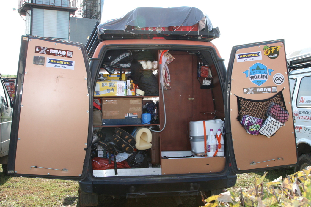 Вот вам первый «Соболь 4×4» в котором есть туалет и душевая. И не в разобранном виде, а в виде отсека. Об этом стоит поподробнее. Итак, год назад Сергей Рыбинцев собрался объехать на автомобиле всю Россию. Долго выбирал варианты, приценивался к бэушным иномаркам и «буханкам». Пообщавшись с Петром Груздевым (в начале года он возглавил экспедицию «Соболей» за Полярный Круг к заброшенному властью и оккупированному нефтяными магнатами поселку Варандей на берегу Северного Ледовитого океана), Сергей понял, что можно сделать из обычной газовской техники. В его распоряжение был полтора «ляма» рублей, оставшихся после продажи всей имеющейся в наличии техники. И он взял стокового «Соболя» и оставшиеся деньги вложил в удобный в странствиях апгрейд. В результате появилась уникальная конструкция, которая заставила содрогнуться даже самых богатых соболеводов. Еще бы — «Соболь 4Х4» со встроенным душем и биотуалетом, которые прячутся за стандартную заднюю дверь-распашонку. И это создано не для любителей «дачного оффроуда».