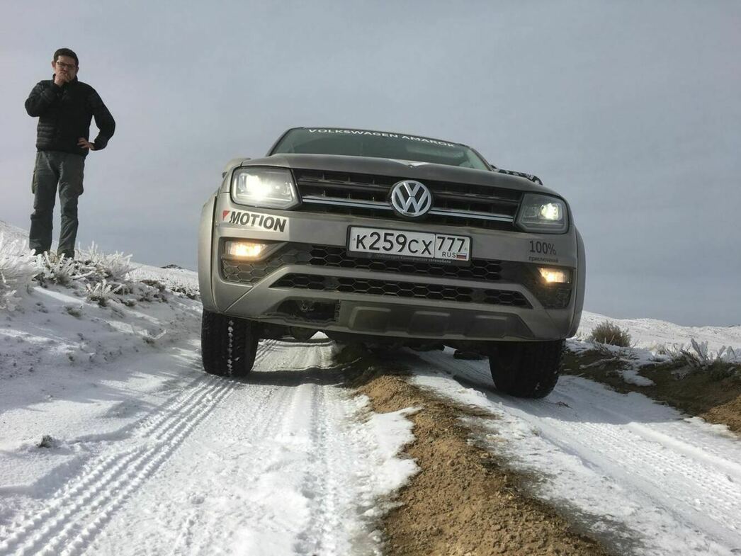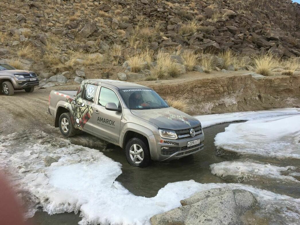 Впрочем, пора вернуться к собственно трансазиатской эпопее «Амароков». На шести обновленных моделях и двух старых мы взяли на ура пару перевалов. Не памирских, понятное дело, но очень похожих по сложности прохождения. Первые снега сменялись полевыми бурями, гололед замерзших рек — прихваченной льдом грунтовкой, неожиданно окутавшей экспедицию саваном непроницаемой даже для противотуманок пыли.