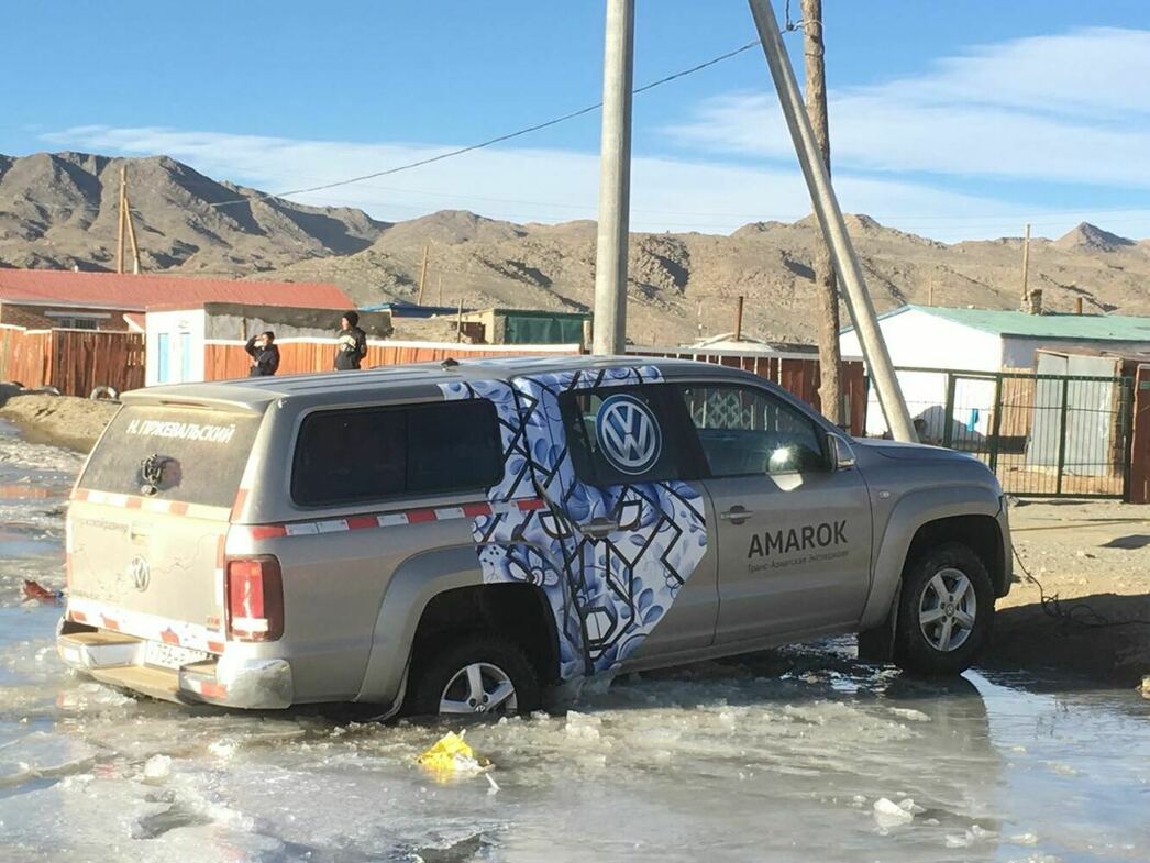 Но пока дела у экипажей идут неплохо. В Монголии мы пробили всего две покрышки, да однажды, не рассчитав, неглубоко провалились под лед — невезучего путешественника пришлось вытаскивать тросом. Но ничего — справились, без проблем перейдя даже через каменистые пески Гоби.