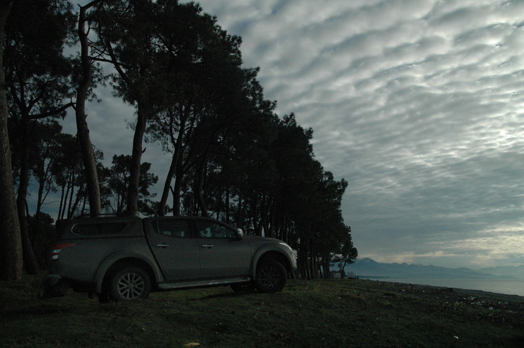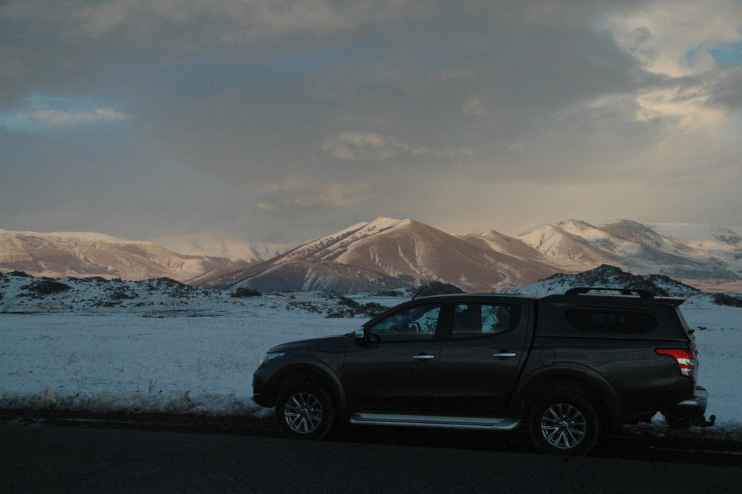 Впереди ждал непростой перевал с сумерками и снегопадом. Серпантин, порой занесенный снегом настолько, что без подключения «передка» ехать было невозможно; видимость, стремящаяся к нулю, зато адреналин бодрил, спать совершенно не хотелось. Спуск с гор на равнину длился часа три, если не четыре и вполне мог бы стать самой красивой частью нашего маршрута, если бы не наступившая ночь.