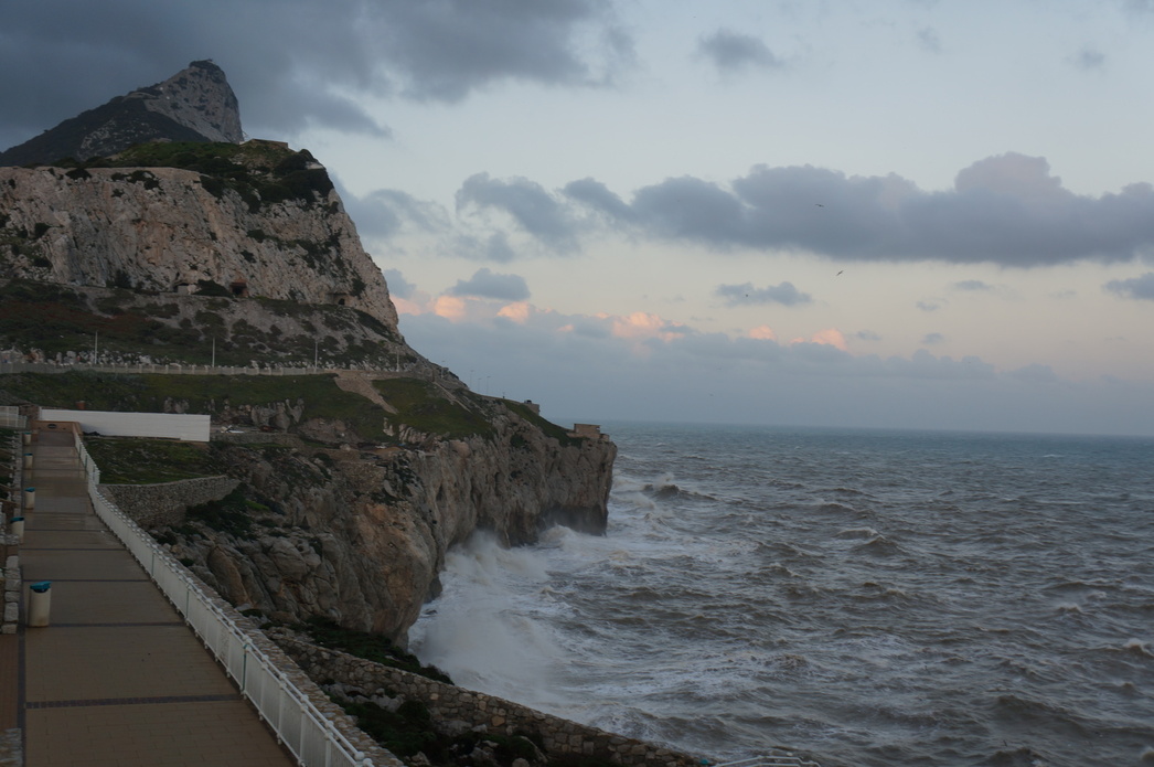 Гибралтар — удивительное государство. Британия аннексировала у испанцев полуостров на границе Атлантического океана и Средиземного моря в 1713 году, продолжая успешно ее занимать и сегодня. Назвать ее маленькой не поворачивается язык, ведь здесь есть даже своя взлетно-посадочная полоса! Она, к слову, единственный способ попасть в государство осуществляется на авто. Движение правостороннее, но машин на британских номерах с рулем из бардачка достаточно, настоящая Англия чувствуется во всем — даже погода, жарившая солнцем полчаса назад, сменилась дождем и пасмурным небом.