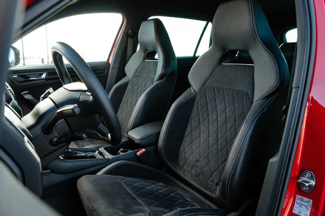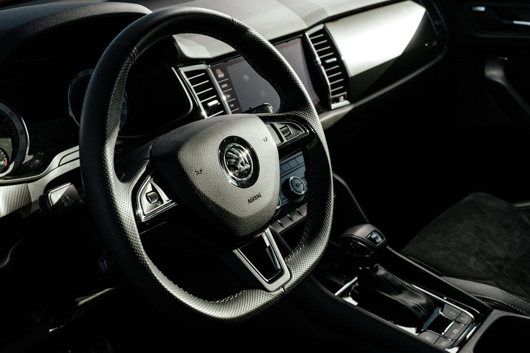 Уровень «нафаршированности» в общем-то бюджетной марки воистину поражает. И я сейчас говорю не только об адаптивном круиз-контроле и датчиках мертвых зон в зеркалах. Салон Kodiaq Sportline также сделан на премиальном уровне. Сиденья отделаны черной алькантарой с декоративной строчкой серебристого цвета. Выглядит это не просто элегантно, а по-настоящему круто.