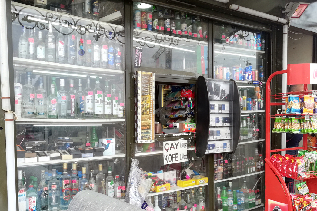 Не проехав и пары километров, напарник просит остановиться у придорожной палатки. Помните в Москве в начале-середине 90-хх повсеместно стояли убогие ларьки, сколоченные на скорую руку из ящиков из-под помидоров, фанеры, шифера и мутного стекла, выполняющего роль витрины. Похоже, эти трущобные магазинчики перевезли в Азербайджан. Как и тогда в Москве, в этих ларьках сейчас также можно круглосуточно купить абсолютно всё, как говорится от контрацептивов, до патронов. Причем, что поразило больше всего, в мусульманской стране, где алкоголь — это харам (запрет, говоря по-нашенски), купить водку или коньяк можно в любое время дня и ночи в любом количестве.