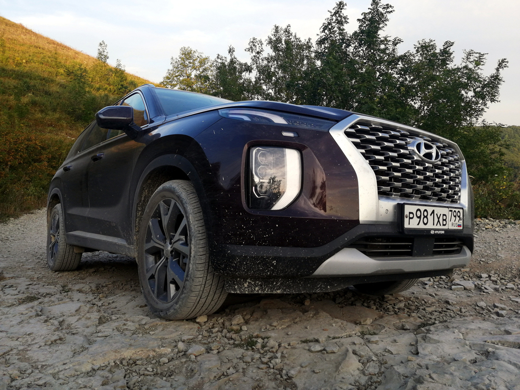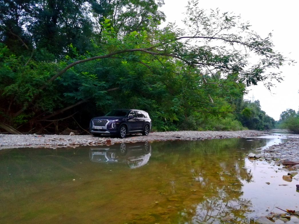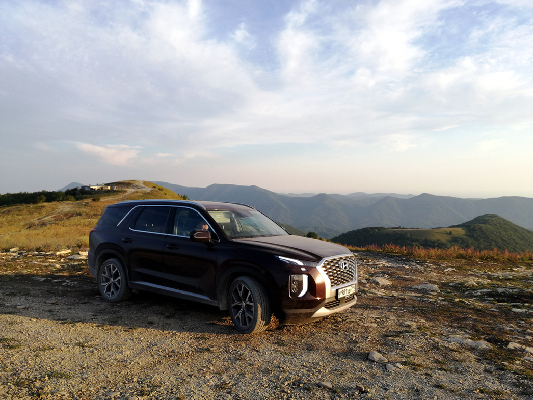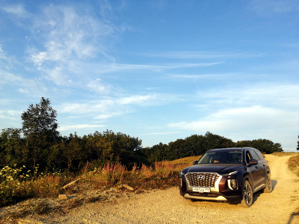 Под капотом нашего Palisade прячется 6-цилиндровый атмосферный V-образник, объемом 3,5 литра, и мощностью 249 «лошадей». При движении по трассе к мотору не было замечаний: ни по мощности, ни по динамике разгона, ни даже по расходу топлива. За пределами асфальта, понятное дело, расход будет выше, да и динамика разгона здесь уже не имеет никакой ценности. На первый план — особенно в горах — выходит крутящий момент. Что ж, бензиновых 336 Нм «Палисаду» хватает за глаза: слегка жмешь на педаль акселератора и машина покорно и без малейшего надрыва ползет вверх.