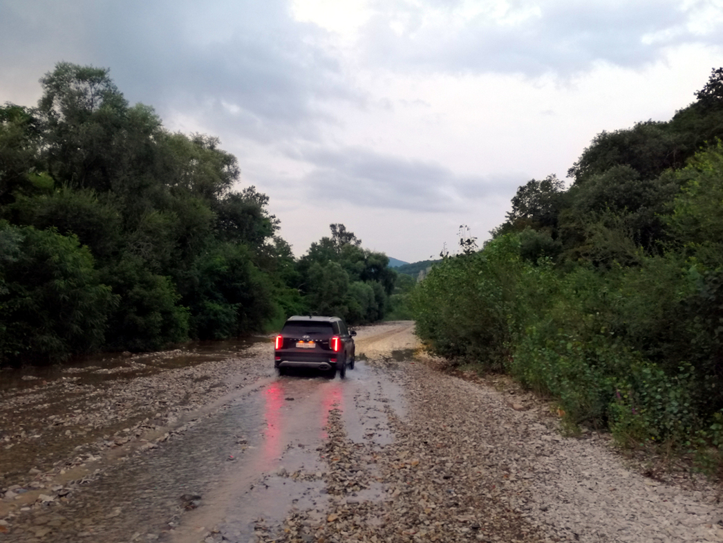 А еще меня поразила не только проходимость машины, но и уровень комфорта. Разбитая УАЗами и грузовиками горная дорога заставляла работать подвеску в режиме нон-стоп. Но у присутствующих в салоне Palisade было полное ощущение, что едем мы не по ухабам, а плывем по волнам на люксовом круизном лайнере. Особенно наглядно работа подвески была видна, когда мы обгоняли два отечественных внедорожника — людей в салоне там болтало из стороны в сторону так, что казалось они вот-вот головами пробьют стекла и крыши своих авто.