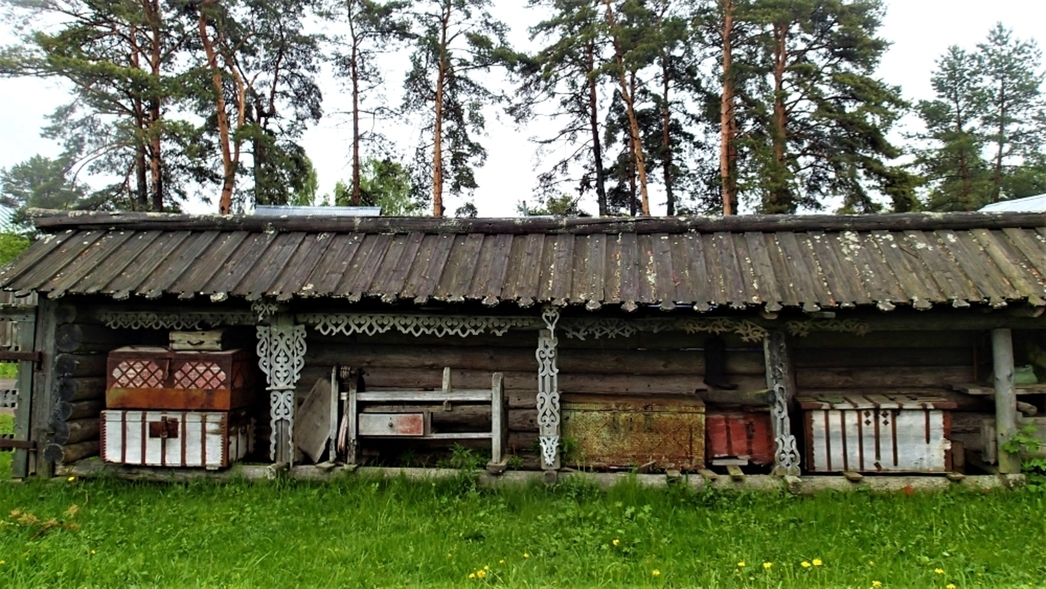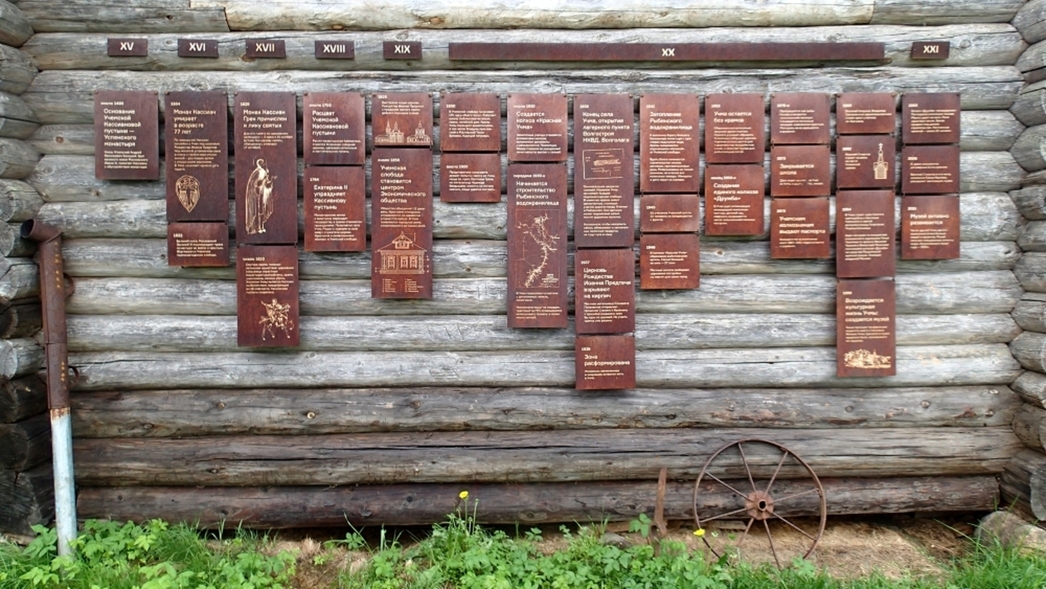 Напротив храма, прямо на пологом берегу Волги, за старинными резными воротами, возвышаются традиционные деревенские постройки — часовня, амбары, конюшня, бани. Это и есть территория «Музея судьбы русской деревни», где представлены уникальные экспозиции «История бывшей Кассиановой Пустыни и ее людей» (когда-то рядом с Учмой располагался этот монастырь), «Один день из жизни деревни», «Своя лодка», «Старухи о любви», «Музей дыр и заплат». Названия говорят сами за себя.