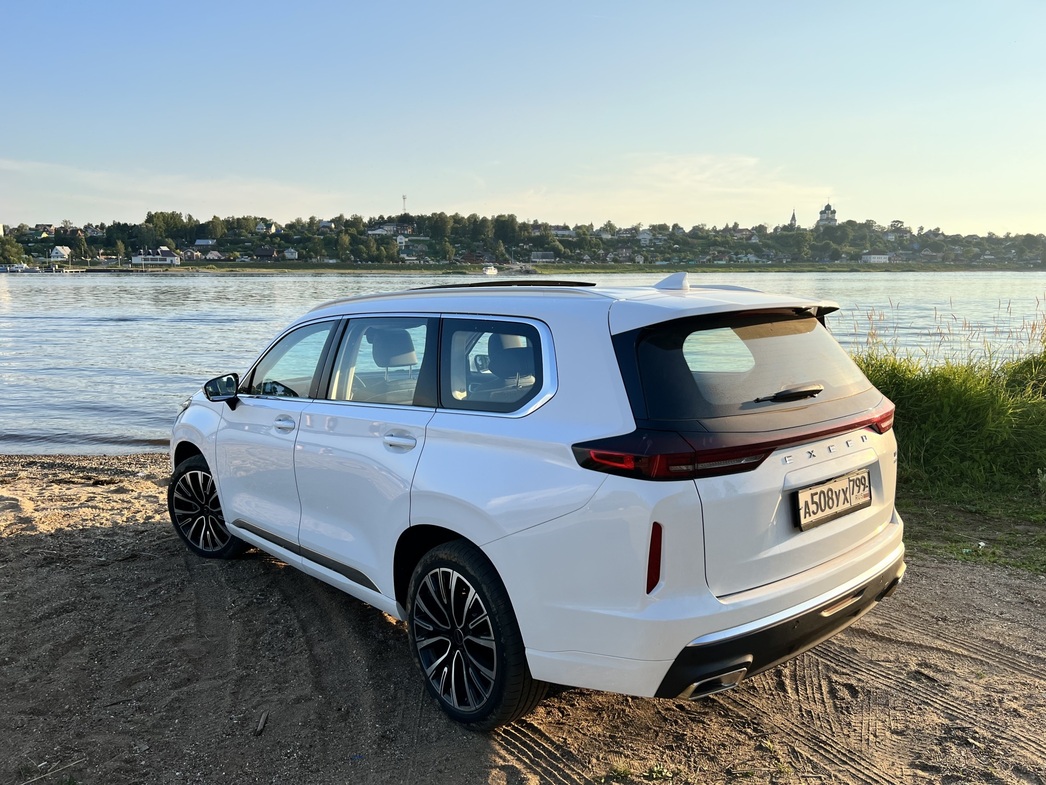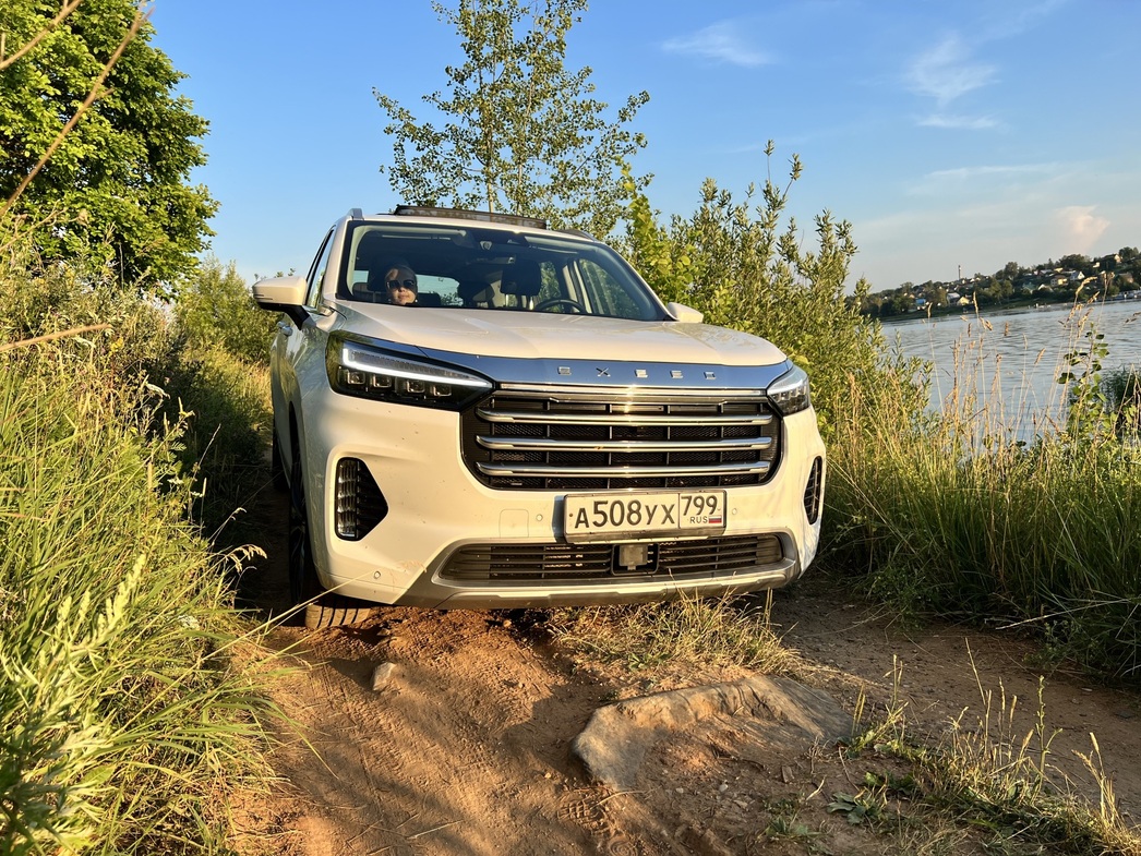 Зато на правом берегу имеется городской пляж со всеми удобствами и хорошим заходом. Но народу много. А вот на левом купание хотя и дикое, но почти уединенное. Особенно если вы на машине. Кстати, именно тут мы продолжили знакомство с премиальным «китайцем» Exeed VX. Полноразмерный, полноприводный, да еще и с клиренсом в 200 мм, он очень уверенно съехал с шоссе на сомнительный проселок. Правда, обратный путь дался ему тяжелее…