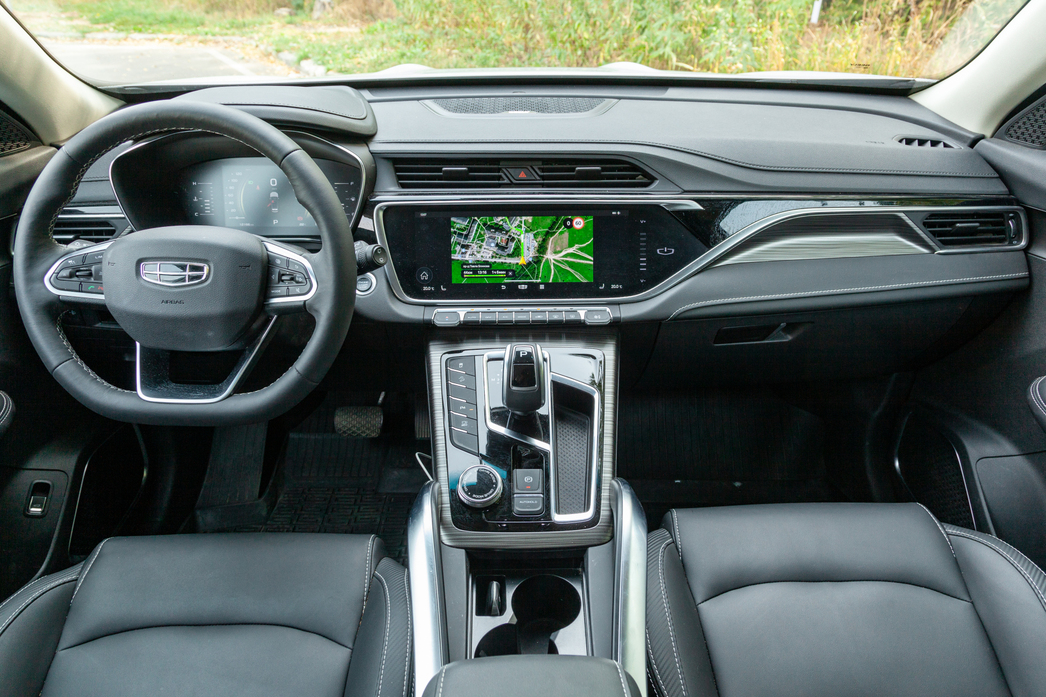 Ко всему прочему при работе адаптивного круиз-контроля в дело вступает и электронный ассистент, следящий за тем, чтобы машина ехала в полосе движение. Аккуратно подруливает, если видит, что траектория движения смещается. И напоминает, что не мешало бы водителю держаться за руль. У расположенного на голову выше Land Rover такая же система работает топорно и пугающе резко. А у Geely — все деликатно.