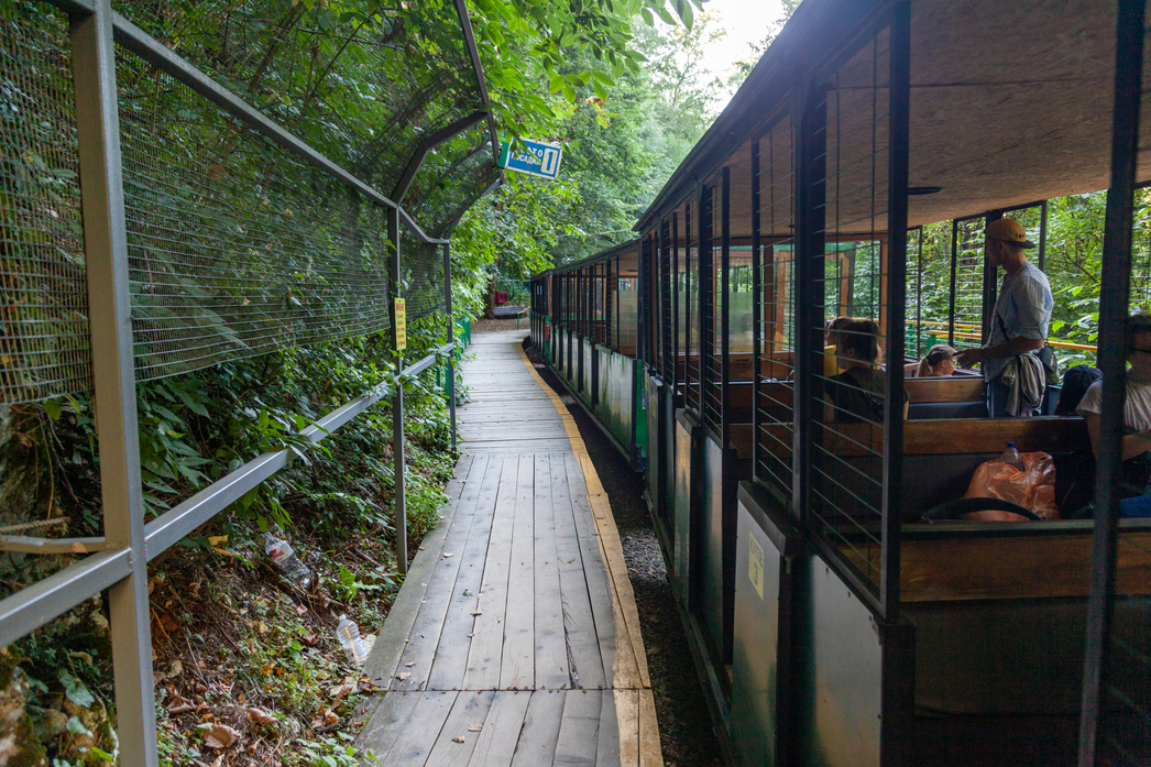 Почему именно так? Дело в том, что хутор является воротами в живописное ущелье, по которому до сих пор ходит по узкоколейке поезд. Да, недалеко, всего пару километров вверх по ущелью вдоль реки. Но детям такой аттракцион очень заходит. Да и нам понравилось.
