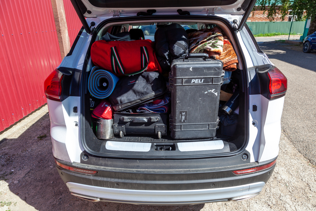 Atlas Pro, несмотря на вполне рядовые для кроссовера размеры, на поверку оказался вместительным. Скарб путешествующей семьи из четырех человек, за исключением доски для сапбординга, в основном поместился в багажник. А то, что нужно достать в дороге оперативно, мы разместили по салону — еда, фото- и видеотехника, гаджеты и зарядки.