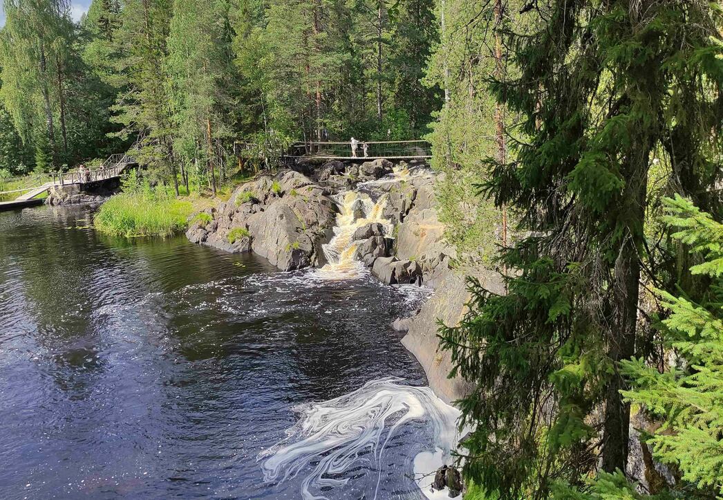 Под вечер, на обратной дороге к коттеджу, поднялись на гору Паасо, с которой открывается захватывающий вид на Ладогу и, если повезет, на проезжающий внизу сортавальский ж/д ретро-экспресс. Стоимость подъема по дощатой экотропе, опоясывающей гору, 500 рублей с человека.