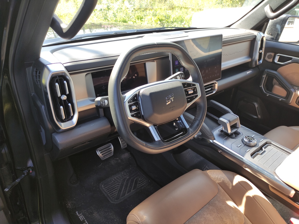 Сразу скажу, что несмотря на внушительный внешний вид, Jetour Т2 все же кроссовер, а не внедорожник: у него несущий кузов и отсутствует понижающая передача. Тем не менее, наш герой — полноприводный. Причем процентное распределение крутящего момента между осями у него не фиксированно, а определяется системой полного привода BorgWarner с управляемой муфтой и электронной блокировкой заднего дифференциала. Система автоматически распределяет тягу в зависимости от дорожных условий, что делает T2 вполне подходящим SUV для езды по различным поверхностям, включая офф-роуд.