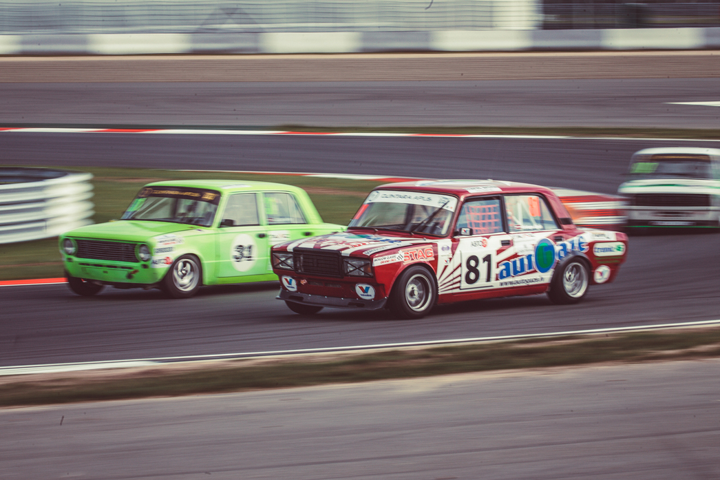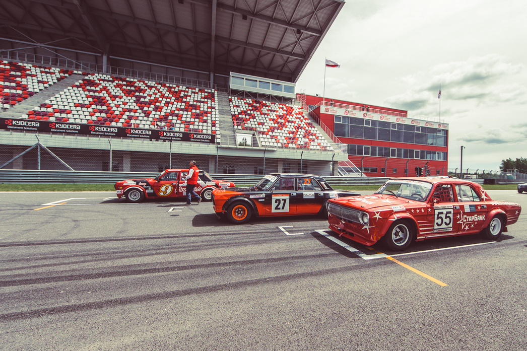 Столь жесткий подход к безопасности, пусть речь идет о заездах ретромобилей, более, чем оправдан: с гонками с общим стартом не шутят. А именно эта часть соревнований (заезды «Спорт») стала особенно зрелищной. Здесь было предусмотрено несколько зачетов, разбитых на первом этапе на пять основных групп: «Волга», «Жигули-1300», «Жигули-1600», «Москвич-1600» и «Москвич-2000». Свободные классы «Москвич+» и «Жигули+» остались малочисленными, и ни один из заявленных автомобилей не добрался до финиша. Кстати сказать, состязание вышло вполне международным: в нем, кроме гонщиков из России, приняли участие представители 4-х некогда советских республик – Белоруссии, Литвы, Латвии и Грузии. Им предстояло преодолеть 15 кругов по конфигурации Sprint, то есть в общей сложности чуть больше 30 км.