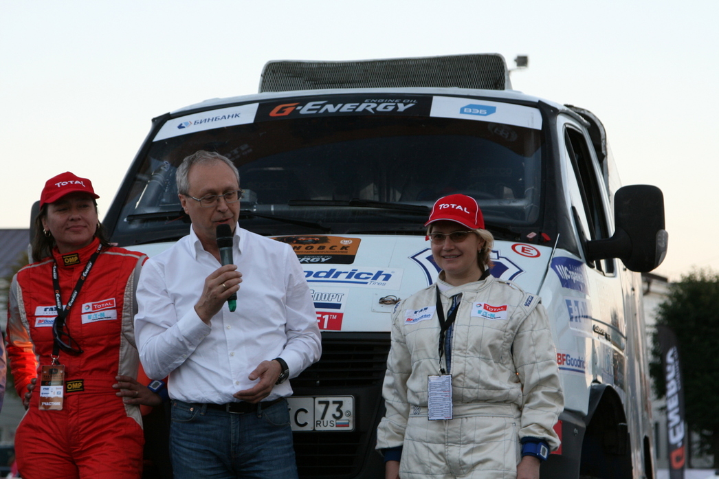 Тем временем, на торжественное открытие гонки прибыл президент «Группы ГАЗ» Вадим Сорокин. Мало того, въехал на подиум на гоночном болиде Соболь 4х4 женского экипажа команды, взяв себе в качестве «штурмана» губернатора Ульяновской области. По его словам, команда наглядно доказала, что отечественная техника может творить чудеса на гоночной трассе. Тем более, что главная фишка «ГАЗ Рейд Спорта» – максимум штатных узлов и агрегатов. В подтверждение президентских слов экипаж Александра Кострукова и Евгения Павлова на «Газель NEXT» взял «золото» в самой представительской категории «рейд-спорт». Можно сказать, что парни в общей сложности уже третий год удерживают лидерство в зачете, а по результатам этого года стали абсолютными чемпионами. Конкурентов у них нет. А «бронза» досталась экипажу Александра Семенова и Рамиля Замалетдинова на дакаровском прототипе Т1. Самое интересное, что у парней главной целью были не призовые места, а окончательная доработка прототипа, который команда собирается выставить на Дакар. Но спортивный азарт взял свое! Подробнее про сенсационный аппарат мы расскажем чуть позже. Пока же стоит добавить, что команда заняла третье место в командном зачете, окончательно укрепившись на верхушке рейтинга.