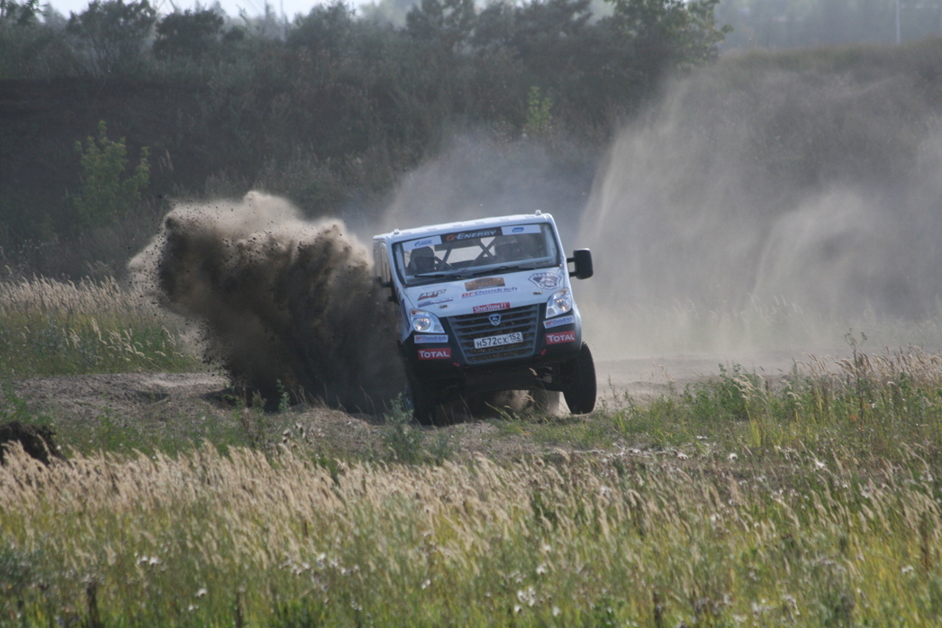Кстати, о грузовиках. На пятом этапе журналистская братия ожидала грандиозного зрелища: поединка команд «КамАЗ-Мастер» и «ГАЗ Рейд Спорт». Можно сказать, что это противоборство – одна из основных интриг текущего гоночного сезона. Судите сами, «Синяя армада» занимает весь призовой подиум, и конкуренты из МАЗа уже подвинуты. Подтверждение тому – последняя «Великая степь», главный этап чемпионата страны. Несмотря на титанические усилия, белорусы не смогли прорваться на подиум. А нижегородцы тихой сапой утвердилась в грузовом зачете. Мало того, принципиально новый аппарат «Газон NEXT» Болеслава Левицкого вышел в лидеры зачета, опередив пилотов команды «КамАЗ-Мастер», Андрея Каргинова на 2,6 очка и Айрата Мардеева на 3 очка. Так что журналистская братия судачила, что на ульяновском этапе КамАЗ поставит выскочек на место. Ходили слухи, что «Синяя армада» выведет для этого две боевые машины. Увы, «кровавого поединка» не состоялось, камазисты вообще не вышли на трассу. Официальных комментариев по этому поводу не было, посему есть две противоположные неофициальные версии. По одной, техника после «Великой степи» не «пришла в себя», а по другой – «великие не хотят связываться». Так что два грузовика команды «ГАЗ Рейд Спорт» прошли ульяновскую трассу на непривычно высокой скорости – техника подверглась суровой доработке. И добавила в копилку дополнительные очки. Поговаривают, что «разборка» может состояться на последнем этапе чемпионата в Волгограде, который состоится в конце сентября.