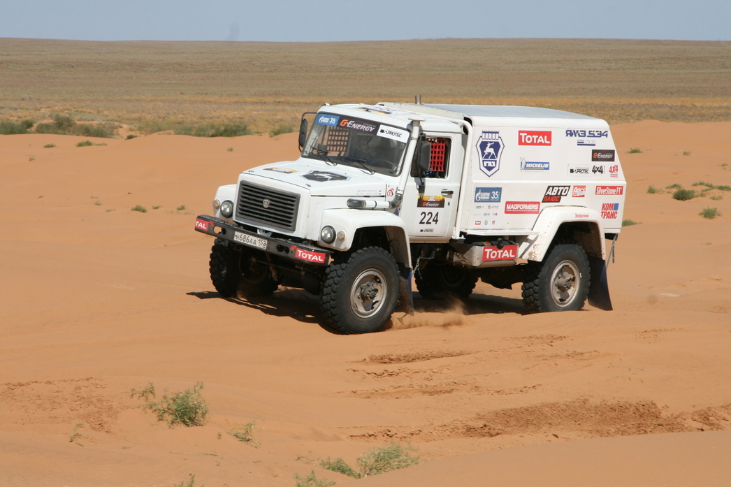 В очередной раз на российском чемпионате вообще не появились так ожидаемые болельщиками КамАЗы. Это уже становится нехорошей, мы бы даже сказали — антипатриотической — тенденцией, и оправдания подготовкой к более серьезным международным гонкам уже не проходят. Игнорировали рейд братские белорусы из МАЗа, но соседей понять еще можно — все-таки это российский зачет (хотя пилоты из других стран, включая Австралию, к нам приехали). А вот отсутствие «лица России на Дакаре» удручает. Можно было хотьодин гоночный КамАЗ выставить на радость публике. В итоге грузовой зачет представлял лишь ГАЗ, чьи гонщики показали чудеса акробатики, в том числе и вставая «на уши».