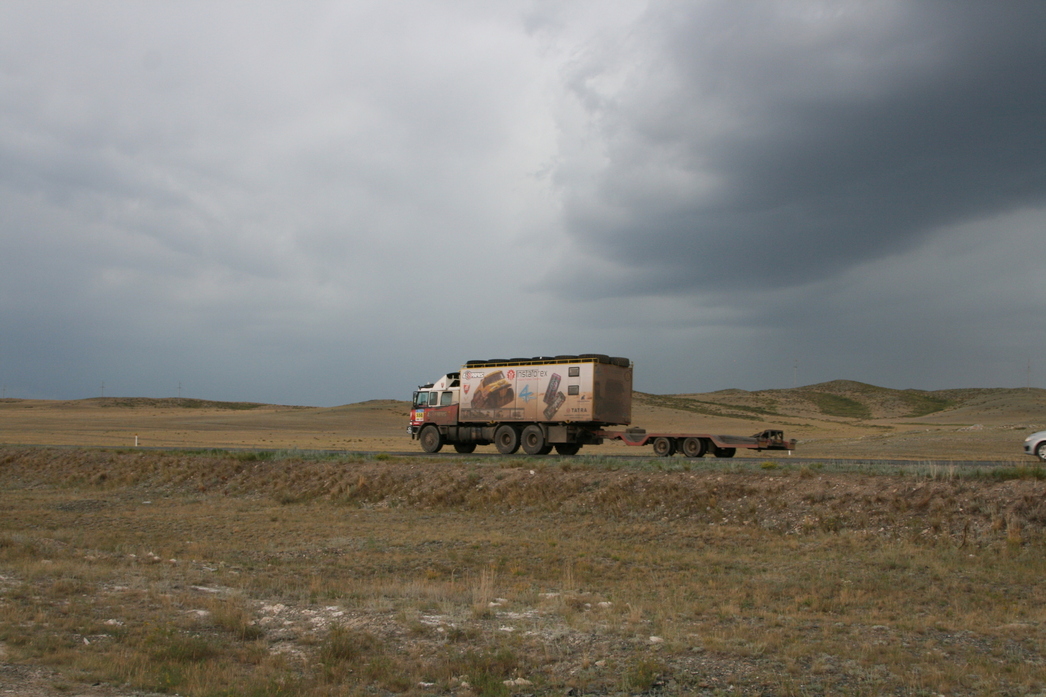 Если же говорить о последнем спецучастке на территории Казахстана, то он проходил вдоль знаменитой Туркестано-Сибирской магистрали, построенной в конце 20-х годов прошлого века. Это была жесткая степь со множеством коварных ловушек. Увы, но обильные осадки преследуют караван гонки от самой Москвы. А в середине дня пошел не просто проливной дождь, а непривычный для степных просторов тропический ливень. Около часа вода лилась с небес сплошным потоком. Боевые «Газели» команды «ГАЗ Рейд Спорт», в которой выступает' и портал «АвтоВзгляд», как и в предыдущий день шли по гоночной трассе «караваном» одна за другой. На это жаловались фотографы и операторы, но парни уже вошли в тяжелейший ритм и подошли к китайской границе без потерь. Но такие катаклизмы в их планы не входили: