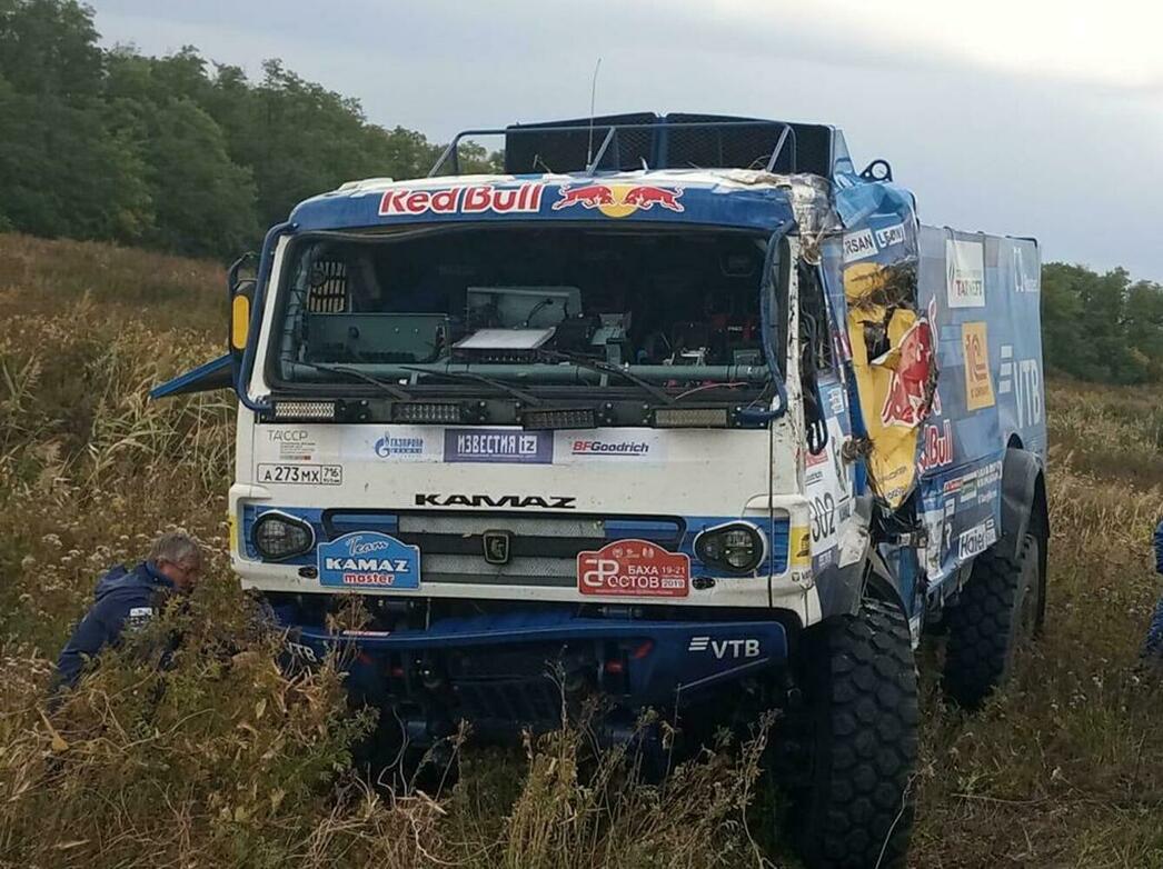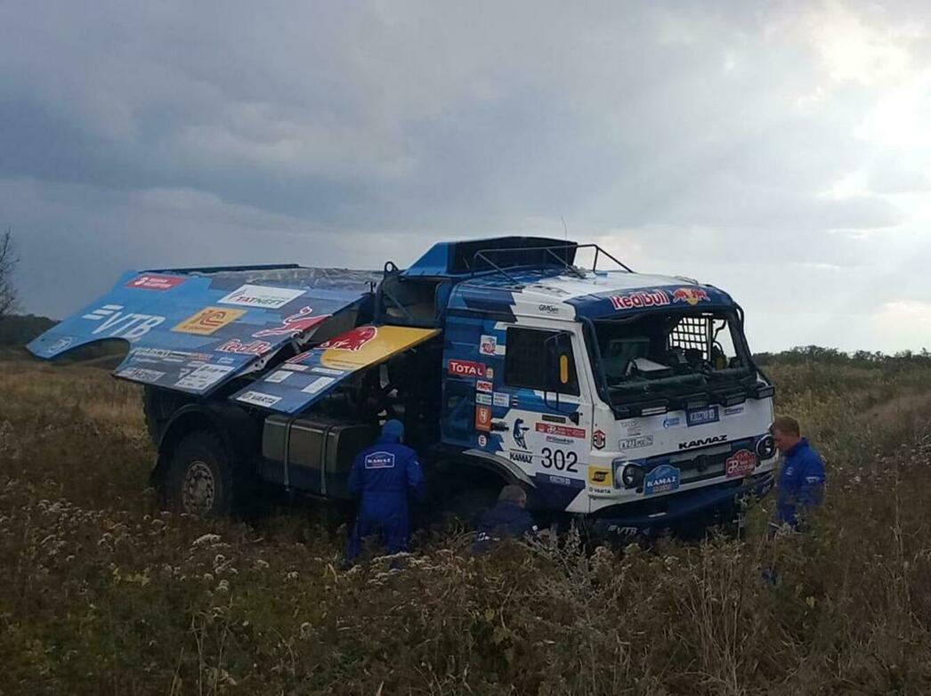 Впрочем, маршрут оказался не таким уж простым — перевернулся автомобиль «КАМАЗ МАСТЕР» под управлением Антона Шибанова. Место действительно опасное — с двух сторон от дороги глубокие овраги, между ними — узкая дорожка. В общем, нужно было пройти по бровке. Не удалось, хотя камазовский экипаж №302 прошел огонь, воду и медные трубы — в активе победы в самых престижных соревнованиях, несколько лет назад именно он заняли высшую ступеньку пьедестала на ралли Africa Eco Race. Машину кое-как смог вытащить другой экипаж из Набережных Челнов под управлением Эдуарда Николаева, но дальнейшее участие в соревновании оказалось невозможным для Шибанова.