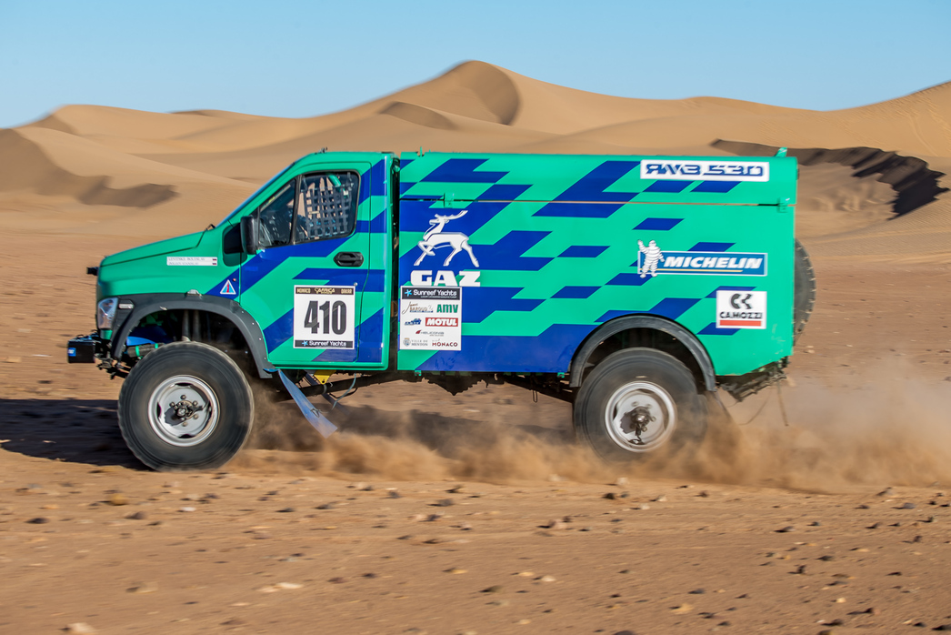 Сложно развивается гонка для команды «ГАЗ Рейд Спорт». Два боевых «Садко NEXT» хорошо выступили на первых двух этапах, но завязли в песках Сахары на 3-й день. Этот этап оказался неудачным для многих. Часть машин вообще не стали штурмовать барханы, полагая, что им это испытание не по плечу. Грузовики ГАЗ хорошо брали пески, но из-за неудачного стечения обстоятельств завязли — один упал на бок, второй застрял на склоне. Увы, но тут против наших машин сыграли их потрясающий внедорожные качества — они забрались дальше других.
