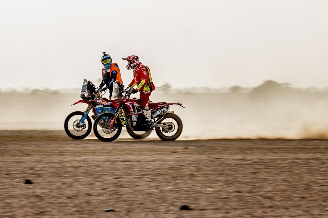 – Мы с Алексеем сегодня выступили в роли Чипа и Дейла, которые спешат на помощь, — продолжает штурман Александр Лагута. Перед нами ехал мотоциклист. Поднимаемся на бархан — его нет. Подъехали чуть ближе — лежит прямо на трассе. Я подбежал к нему, заглушил мотоцикл, попытался помочь. Он лишь французский понимает, по-английски говорит «окей». Какое «окей», когда он может шевелить лишь правой стороной тела, а левая обездвижена! Трогать такого пострадавшего нельзя — может быть поврежден позвоночник. Остановились еще французские экипажи, вызвали вертолет, мы двинулись дальше. Проехали немного — голосует мотоциклистка. Хотела, чтобы мы ее по барханам тянули на тросе. На это не решились — позади поднимается густая пелена пыли и тащить мотоцикл страшно. Непонятно, что дотащишь…