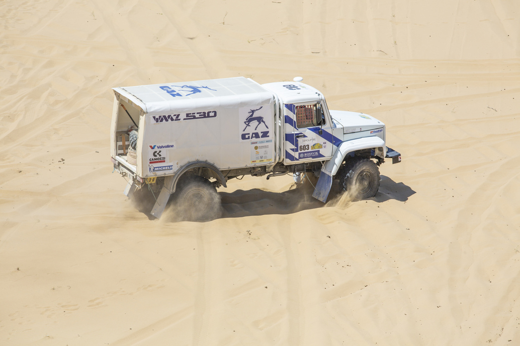 — В этом участке была неожиданная ловушка, — рассказывает пилот команды «ГАЗ Рейд Спорт» Алексей Игнатов. — Влево, в пески, уходил верный путь. А прямо вела накатанная дорожка, причем впереди виднелось скопление машин и люди. Как выяснилось позже, там снимали исторический фильм. А экипажу кажется, что это зрители и очень сложно не поехать прямо. Условный рефлекс пилота — кати мимо зрителей, они собираются там, где все едут. Но в нашем экипаже опытнейший штурман Евгений Павлов, которого обмануть сложно. Поэтому мы проехали маршрут верно.